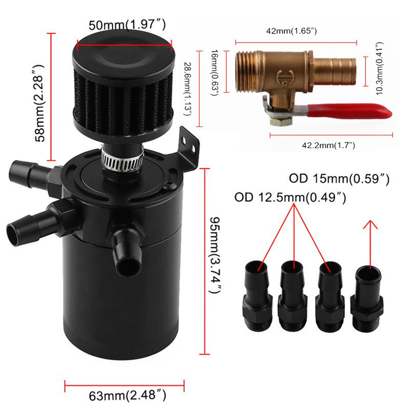 • Complete Kit for Optimal Performance: Each package includes 1 x Universal Dual-Port Oil Catch Can with Integrated Air Filter. An essential upgrade for any car enthusiast looking to maintain engine health and maximize efficiency.