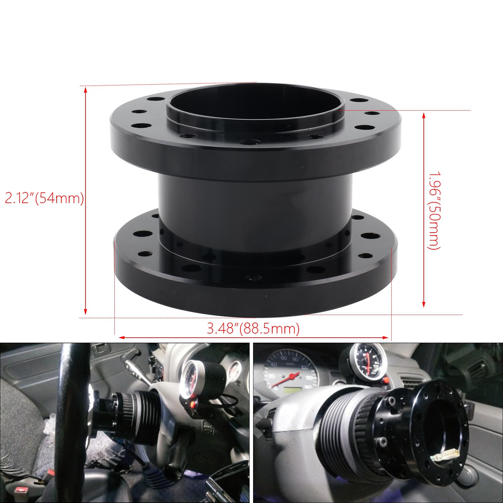 • Universal Fitment: Designed as a universal car modification part, this Billet Aluminum 2.0″ (50mm) Quick Release Steering Wheel Hub Spacer is compatible with most aftermarket 6-hole steering wheels with a 70mm hole distance, and mounts to a standard 3-hole adapter.