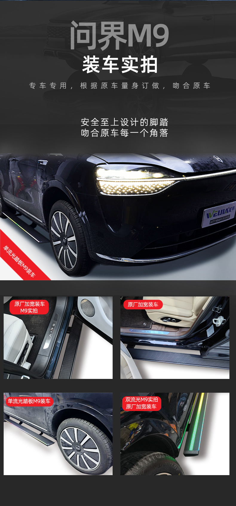 - Complete Package: Includes 2x electric running boards with LED lights as pictured, one for each side. Please verify fitment details for AITO Wenjie M7 and M9 before purchasing.