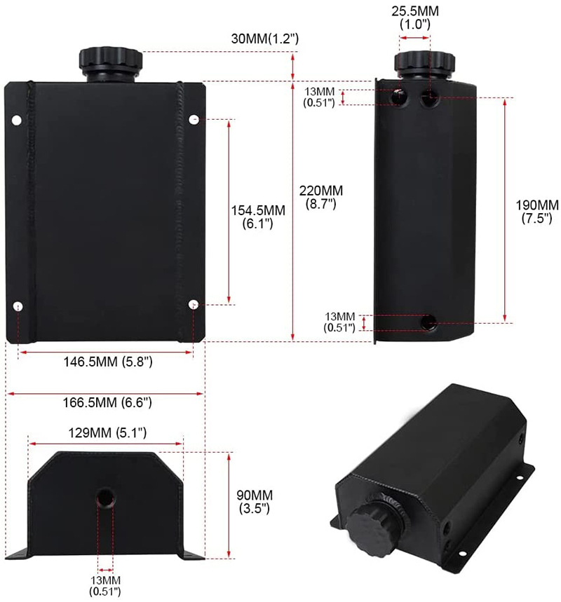 • Effortless Installation & Maintenance: Featuring a simple design and often requiring no drilling for many applications, this catch can is easy to install in various engine bay locations. It includes a drain plug for quick and convenient emptying and reuse, simplifying routine maintenance.