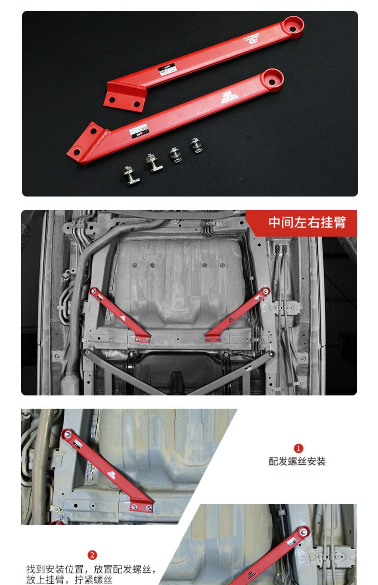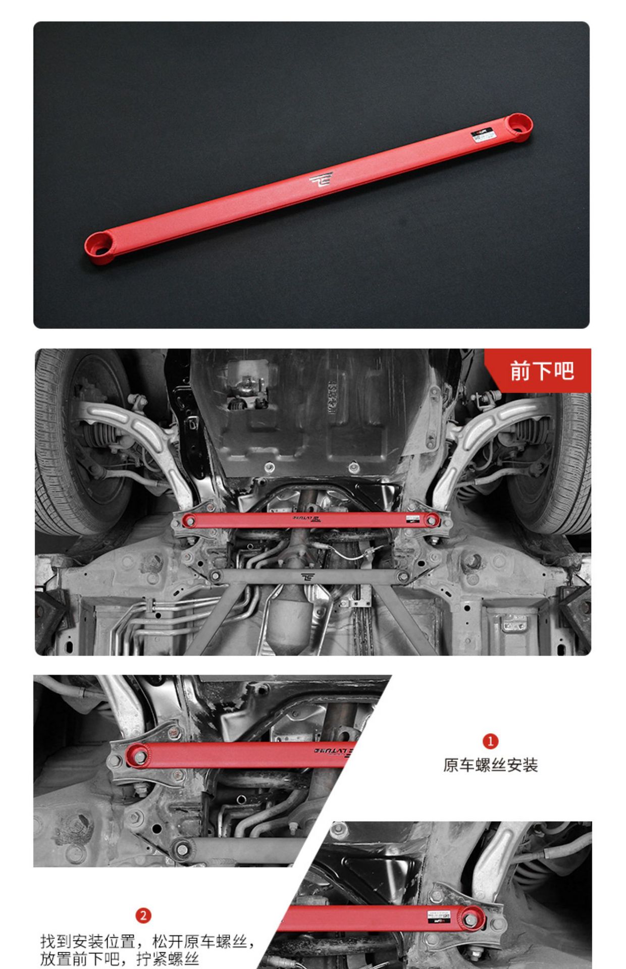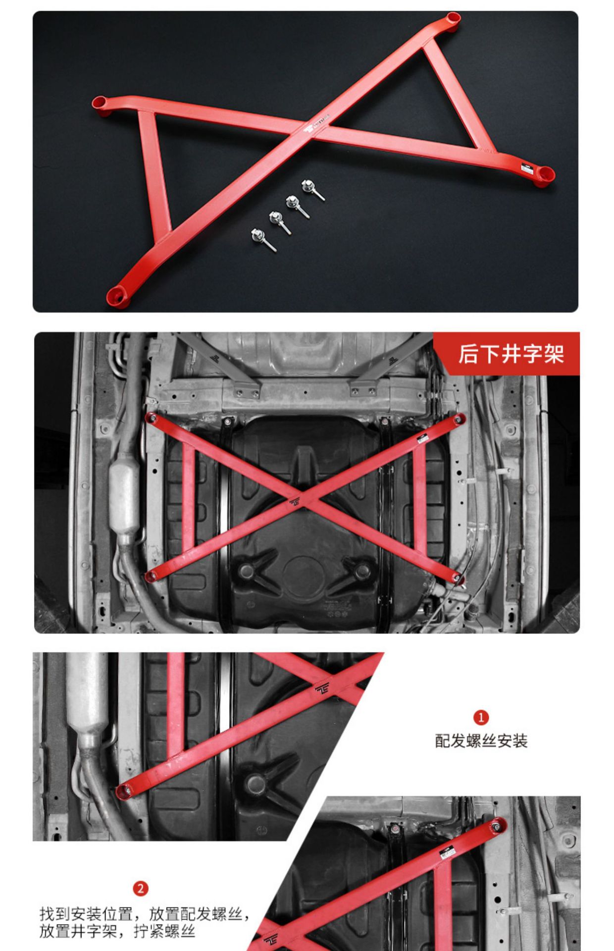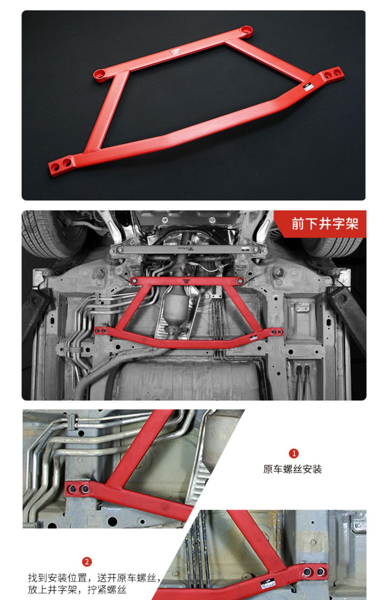 - Comprehensive Chassis Reinforcement: Includes front strut bar, front lower brace, front subframe brace, rear subframe brace, and rear sway bar to provide complete underbody strengthening and improved ride quality.