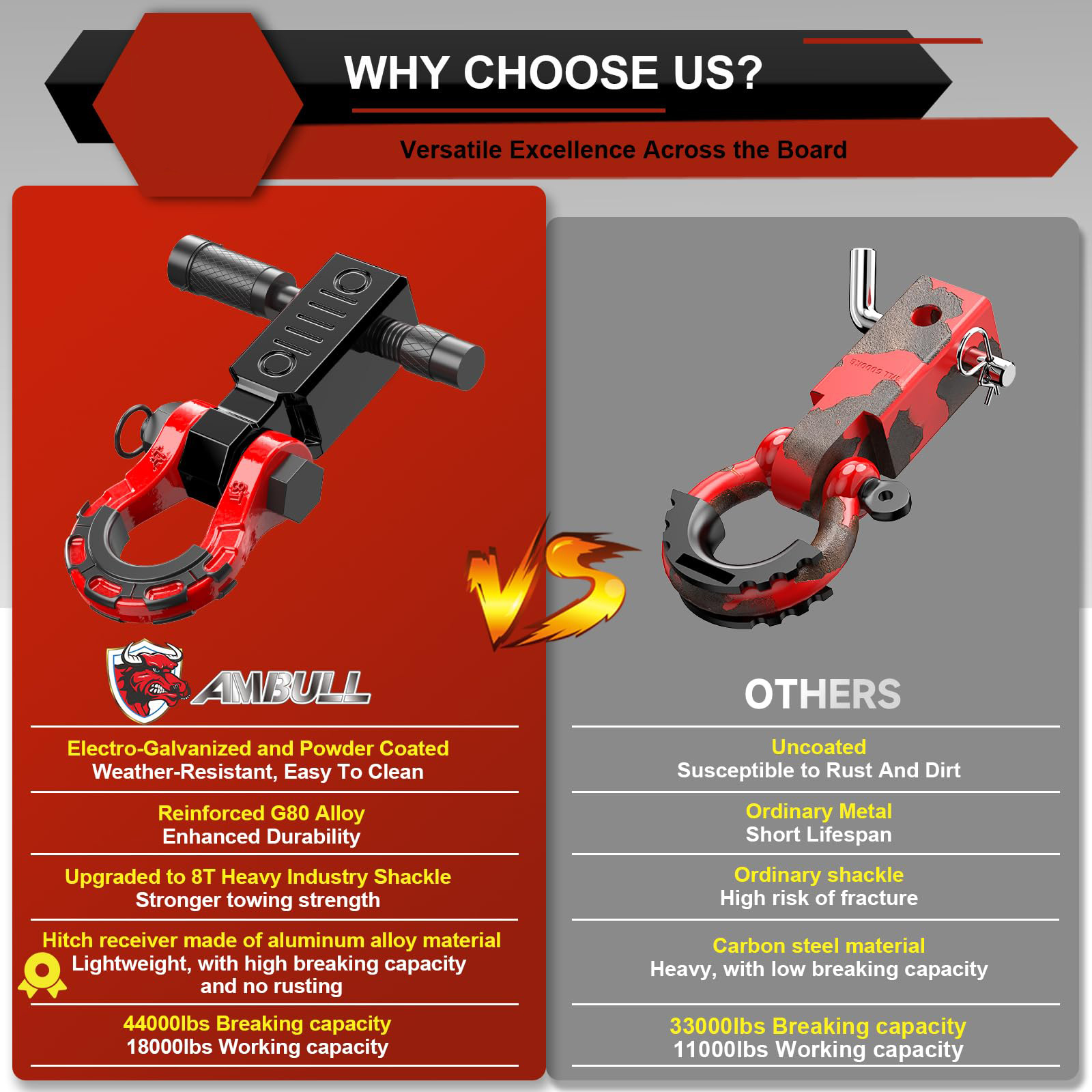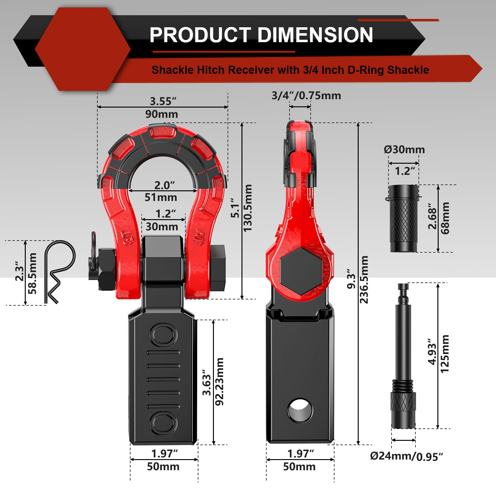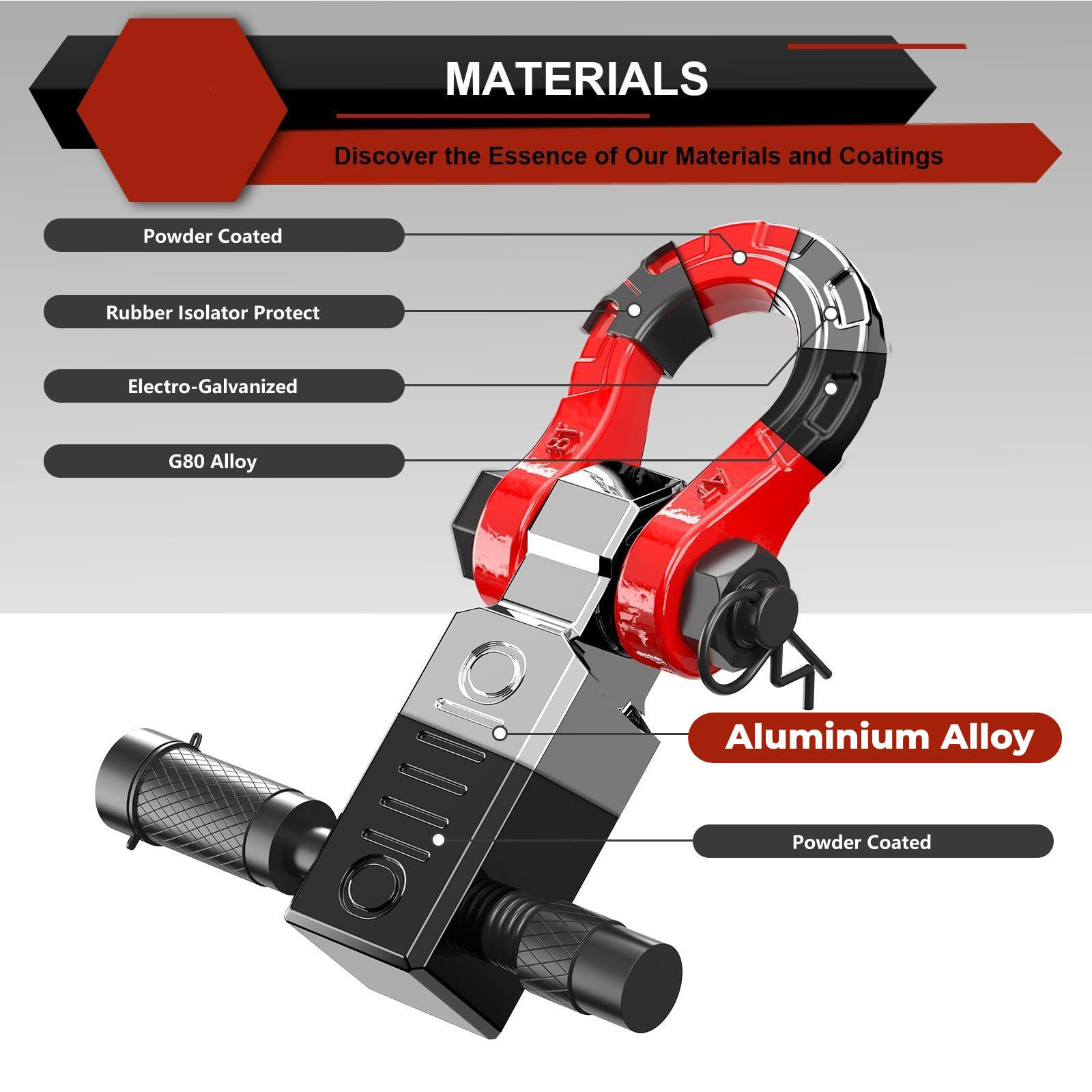 - Premium Material & Durability: Constructed from high-strength aluminum alloy, this tow shackle and hitch receiver offers exceptional corrosion resistance and a rated capacity of 8 tons (8T), providing reliable and long-lasting performance.