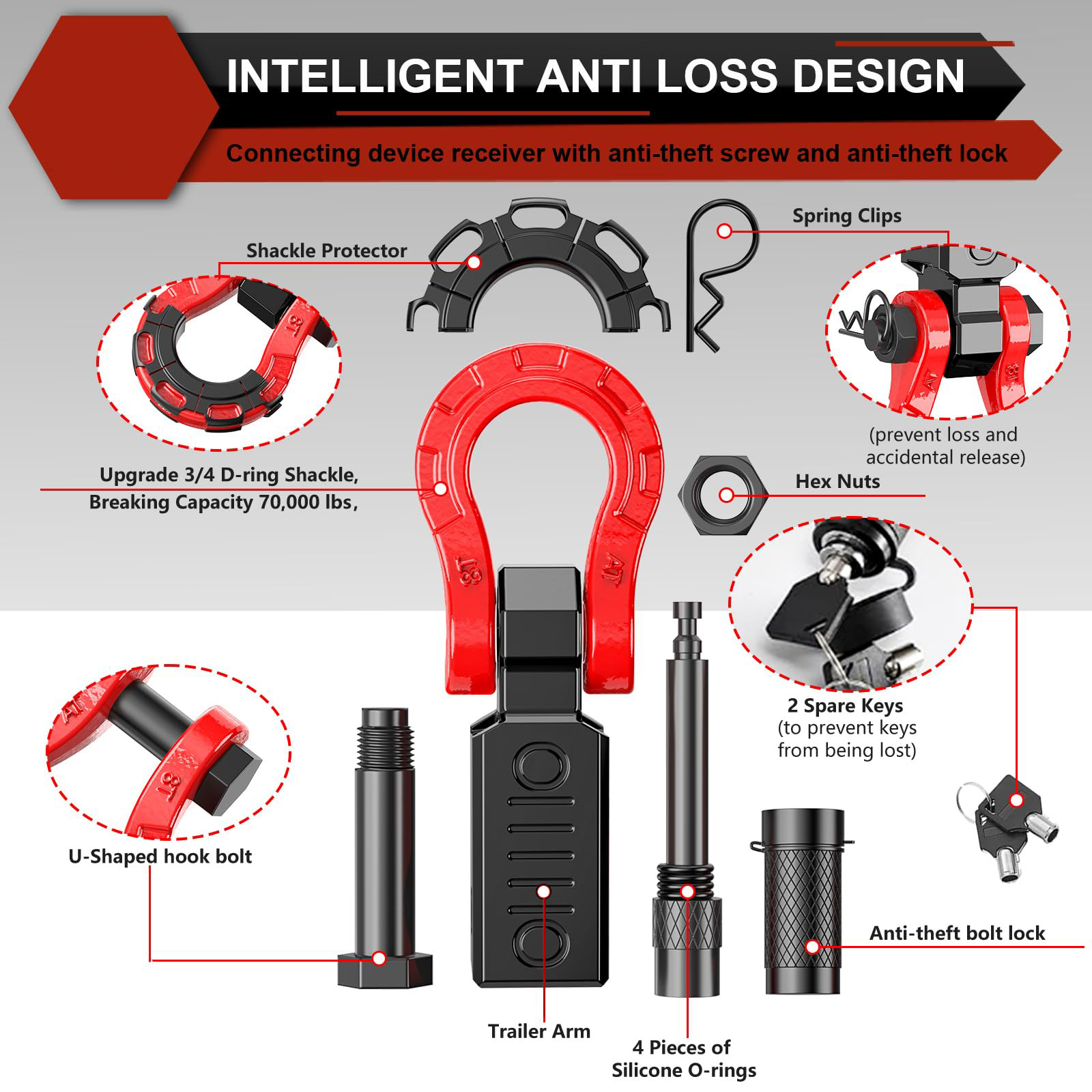 - Complete Recovery Solution: Package includes one 8T load-rated shackle and a square-head aluminum tow hitch arm with a locking pin, providing a comprehensive and essential tool for vehicle recovery and towing needs.