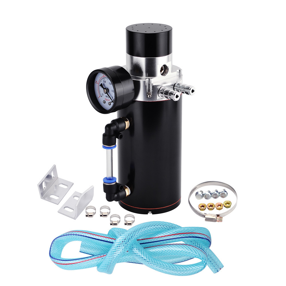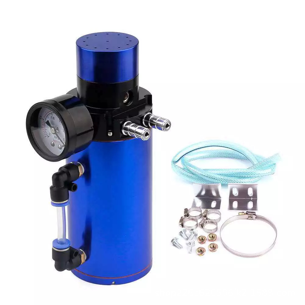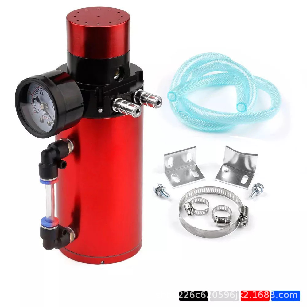 Aluminum Universal Round Oil Catch Can with Vacuum Pressure Gauge for Automotive Modification