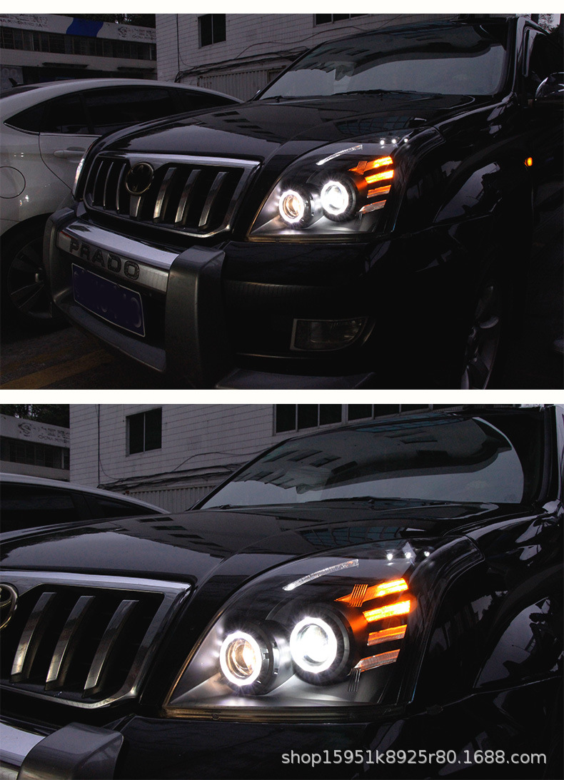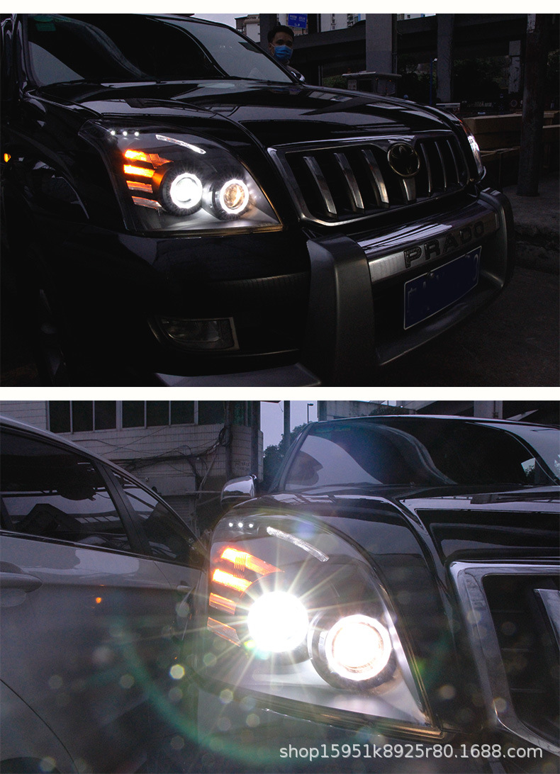 LED Headlight Assembly with Running Light and Flowing Turn Signal for Toyota Prado 2003-2009