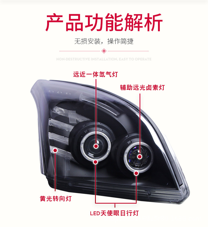 - Enhanced Aesthetics: Features modern Angel Eye projector and Xenon light technology, providing a crisp, bright illumination while upgrading your vehicle’s front-end appearance with a stylish, customized look.
