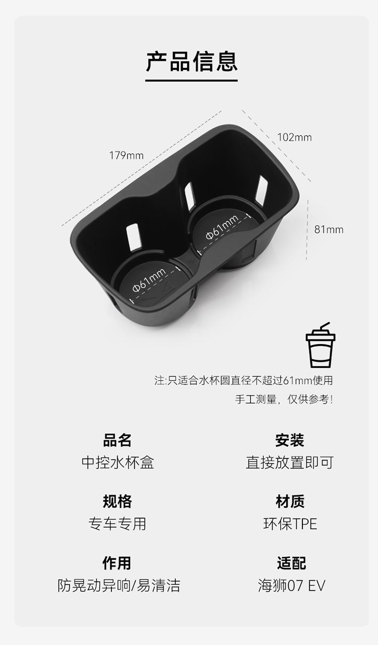 - Direct Fitment: A perfect replacement for the center console cup holder. Compatible with 2024 BYD Seal 07 EV.