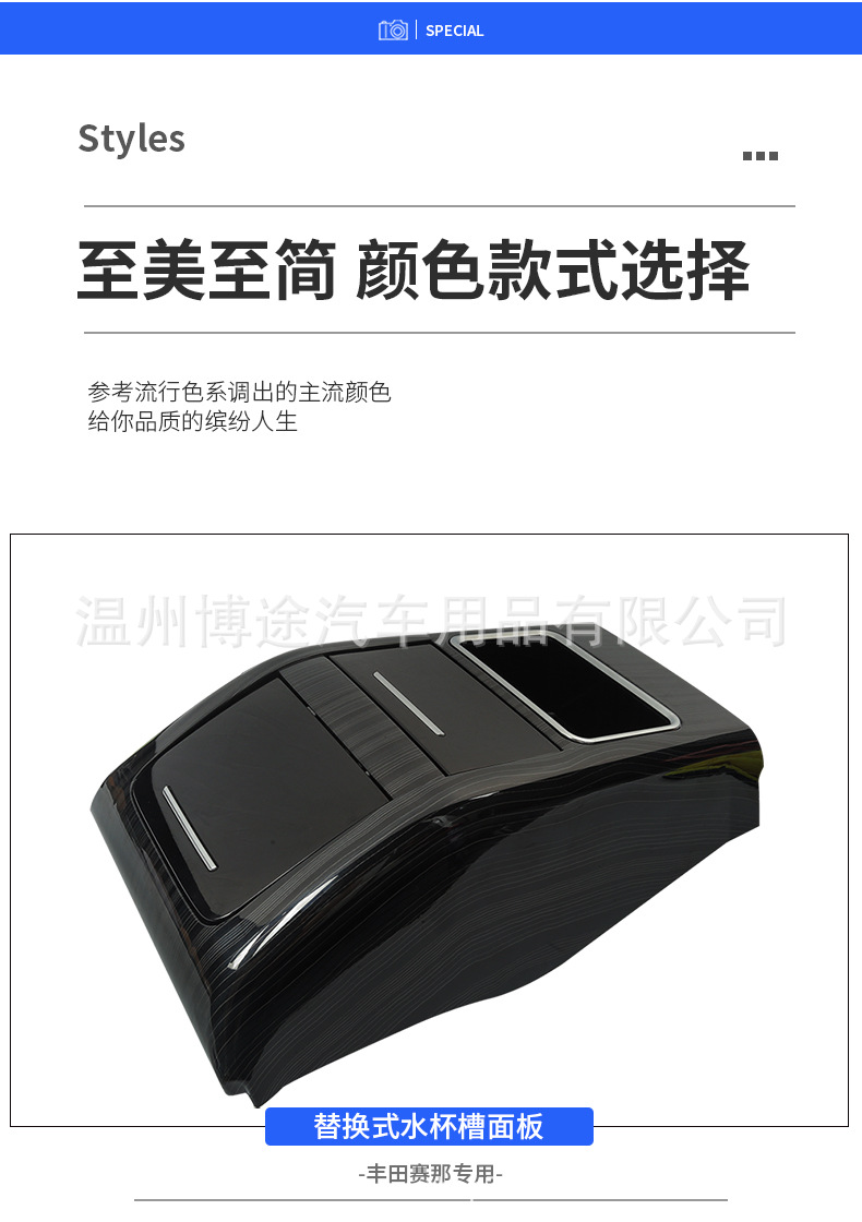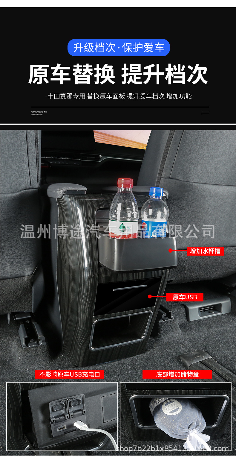 Armrest Box Anti-Kick Cover Water Cup Holder Replacement Trim for Toyota Sienna (US 2021-2024)