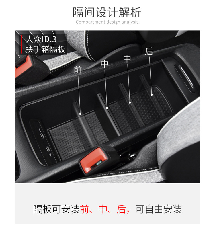 Armrest Box Divider Storage Organizer Tray for Volkswagen VW ID.3