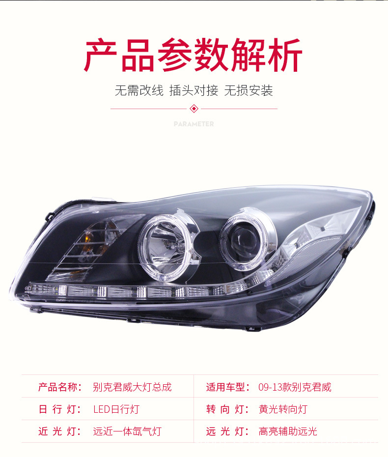 Assembly Angel Eye LED Daytime Running Light Projector Xenon Headlight for Buick Regal (2009-2013)