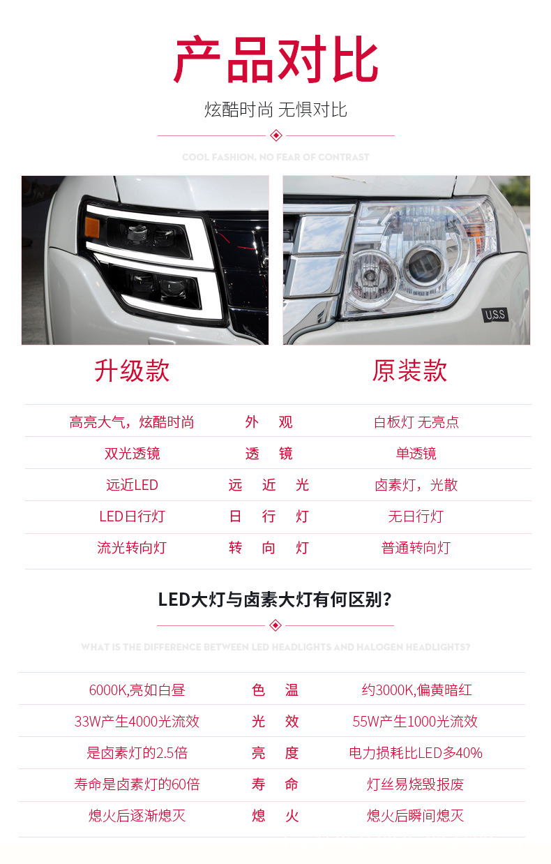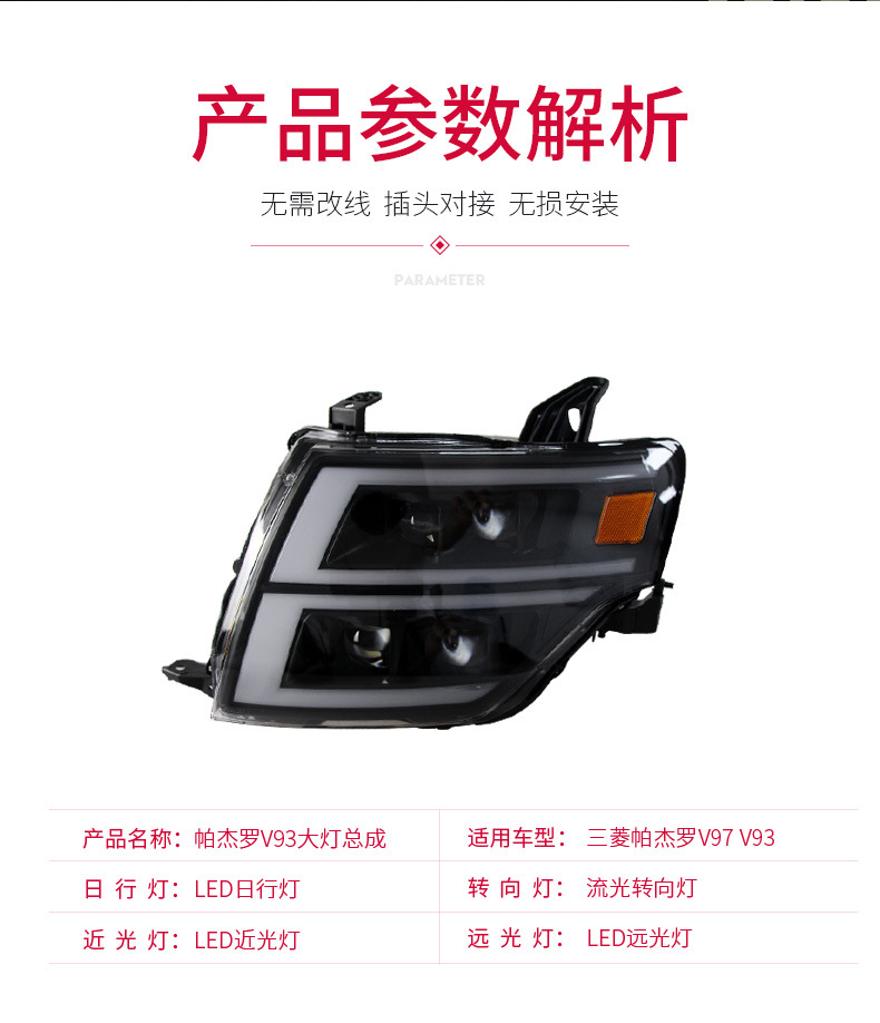 - Modern Styling: Upgrade your vehicle’s aesthetic with integrated LED Daytime Running Lights (DRL) and dynamic sequential turn signals. Adds a contemporary and distinctive look, making your Pajero stand out on the road.