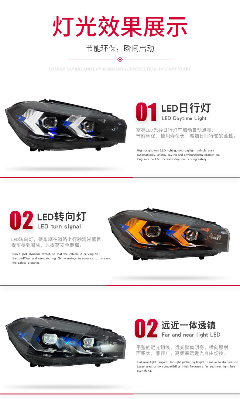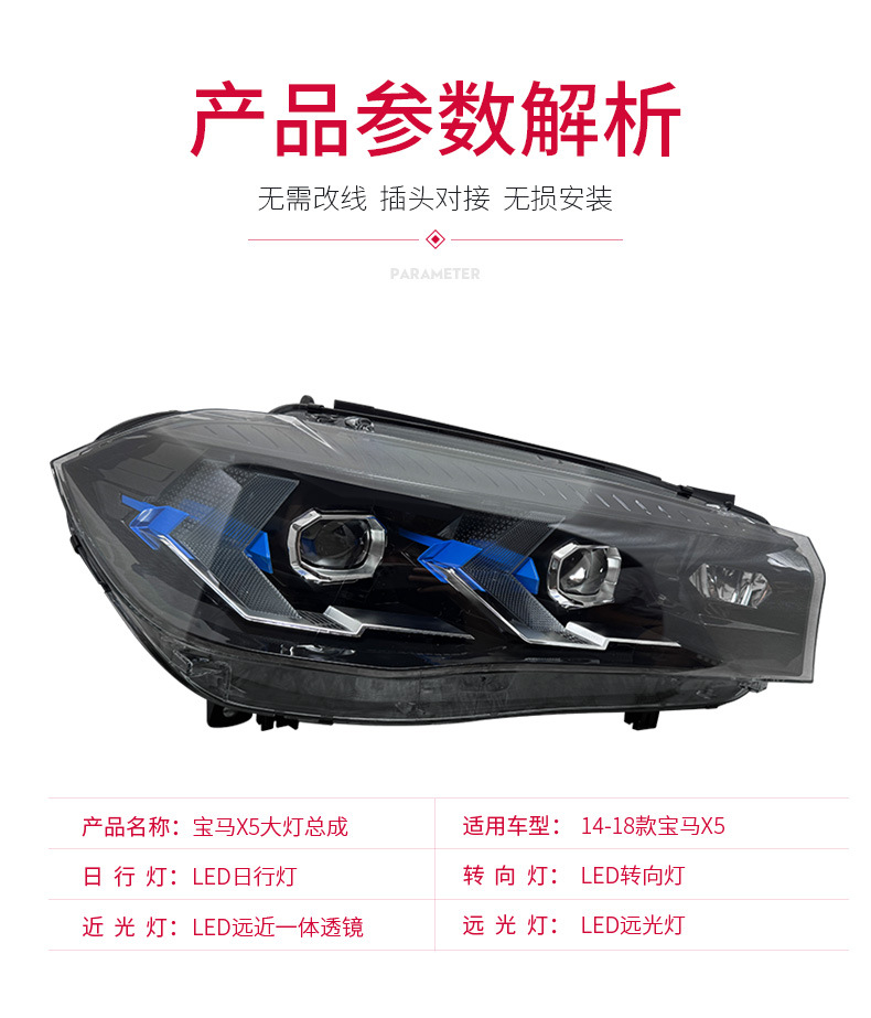 Assembly LED DRL Turn Signal Projector Headlight for BMW X5 F15 (2014-2018), F16