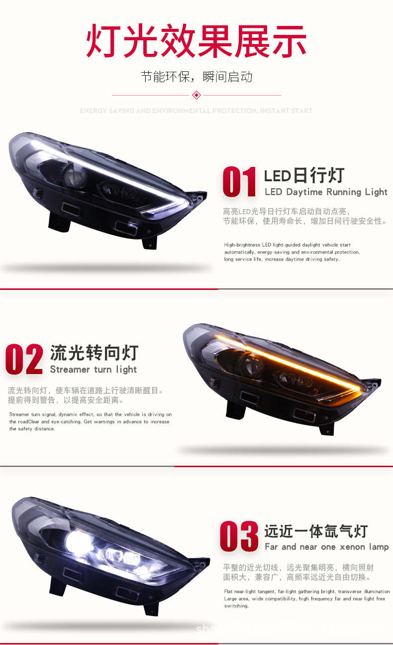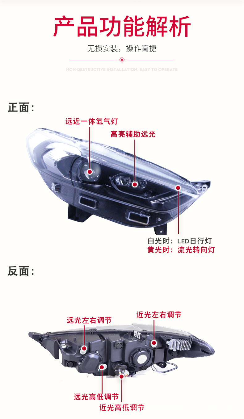 - Modern Styling Upgrade: Features sleek LED flowing turn signals, bright xenon main beams, and integrated daytime running lights, transforming your vehicle’s front-end aesthetics with a contemporary look.