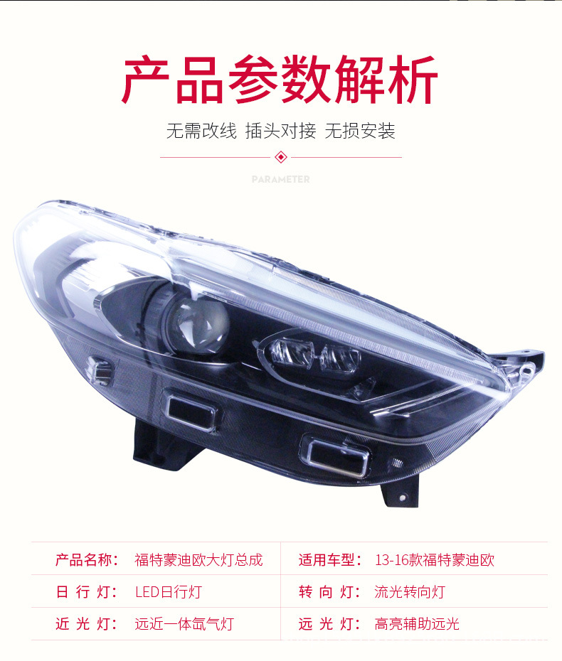Assembly LED Flowing Turn Signal Xenon Headlight Daytime Running Light for Ford Mondeo 2013-2016