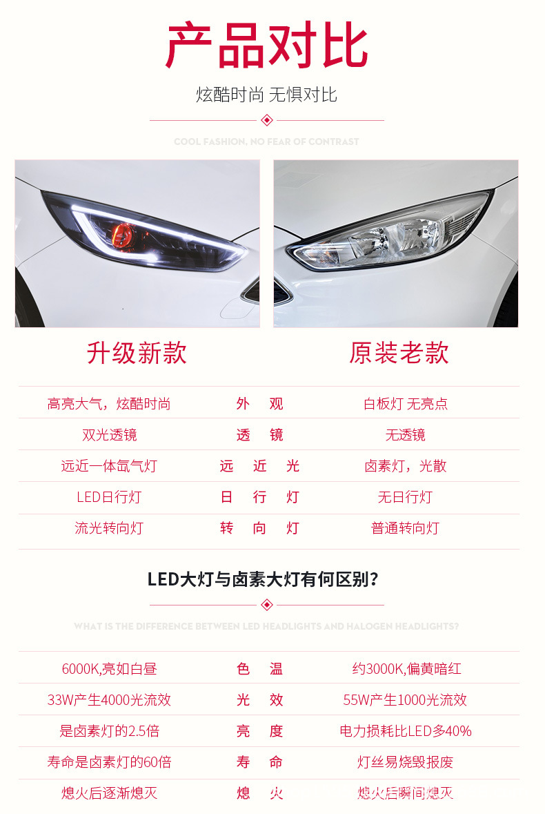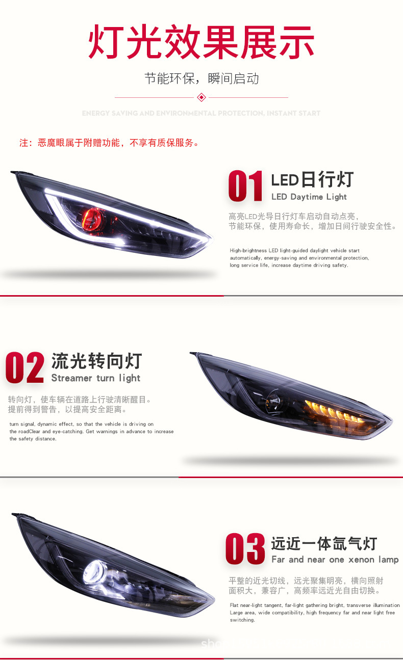 - Enhanced Style: Incorporates modern LED Daytime Running Lights (DRL) and dynamic flowing turn signals, giving your Focus a contemporary and distinct high-end appearance.