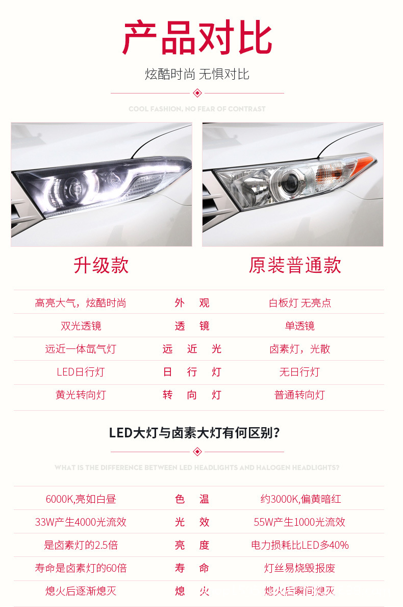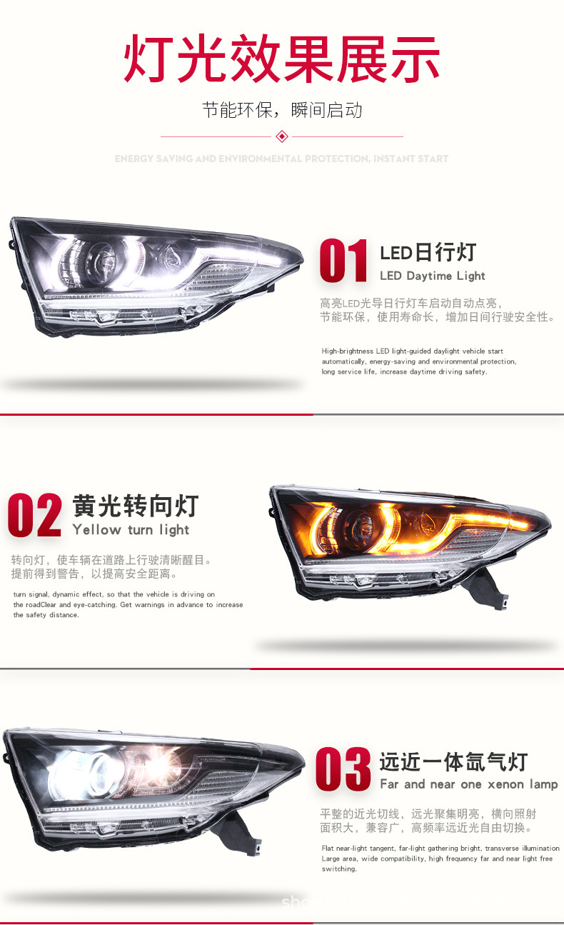 - Stylish LED Design: Integrated Aurora-style LED Daytime Running Lights (DRL) and dynamic sequential turn signals offer a modern, distinctive look, upgrading your vehicle’s aesthetic appeal.