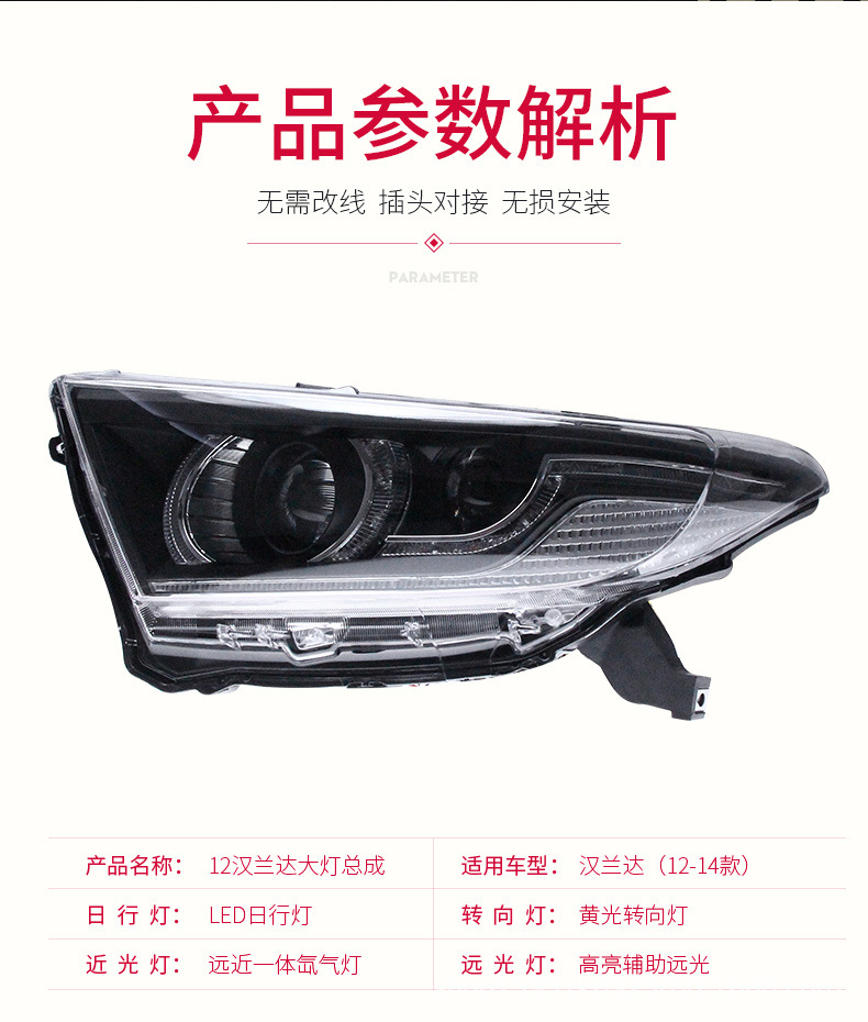 Aurora Style LED DRL Sequential Turn Signal Xenon Headlight Assembly for Highlander (2012-2014)