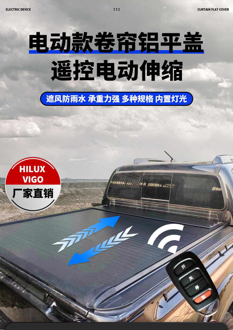- Sleek Automatic Design: Features an electric automatic roller lid with a remote control, adding a modern aesthetic and enhanced convenience to your pickup truck.