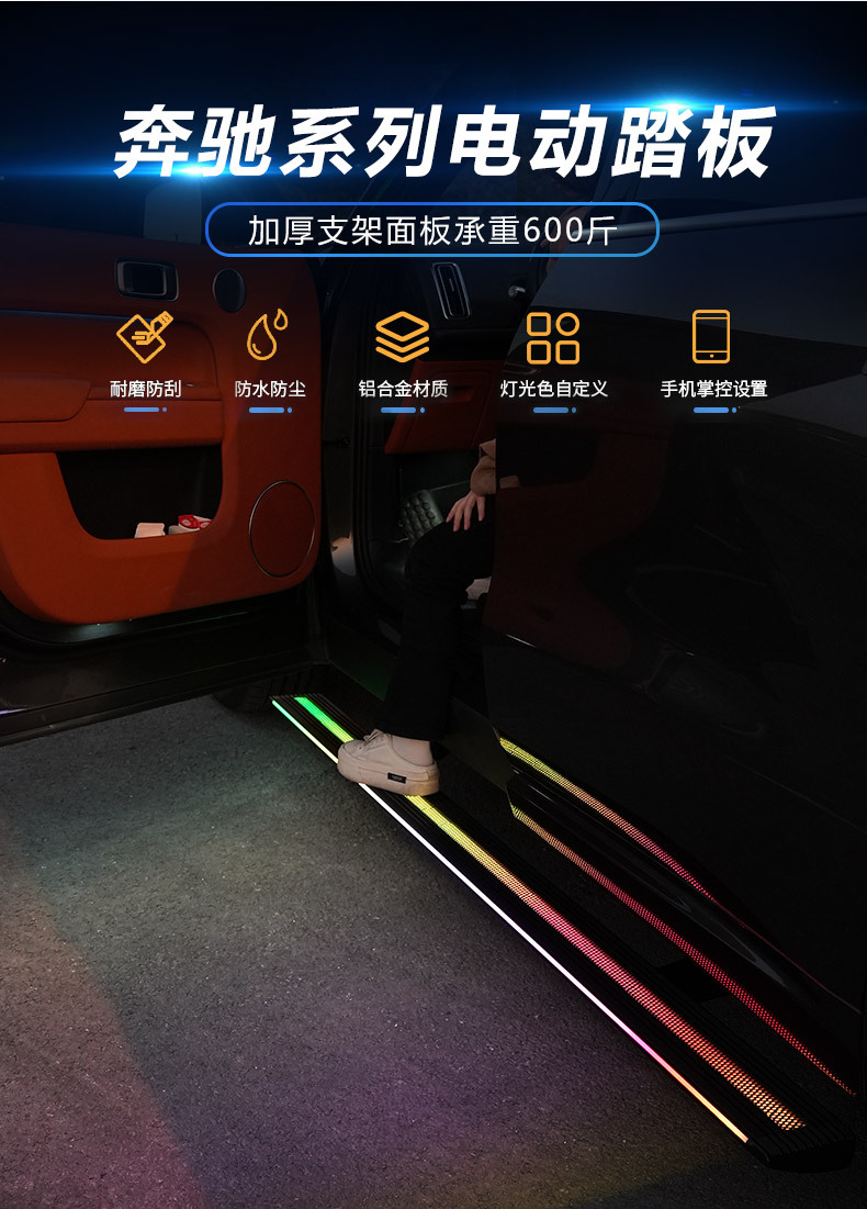 - Performance-Driven Design: Features an automatic retractable function with integrated LED lighting (available in single/dual flowing and engraved light options) that extends when doors open and retracts when closed, enhancing safety and convenience.