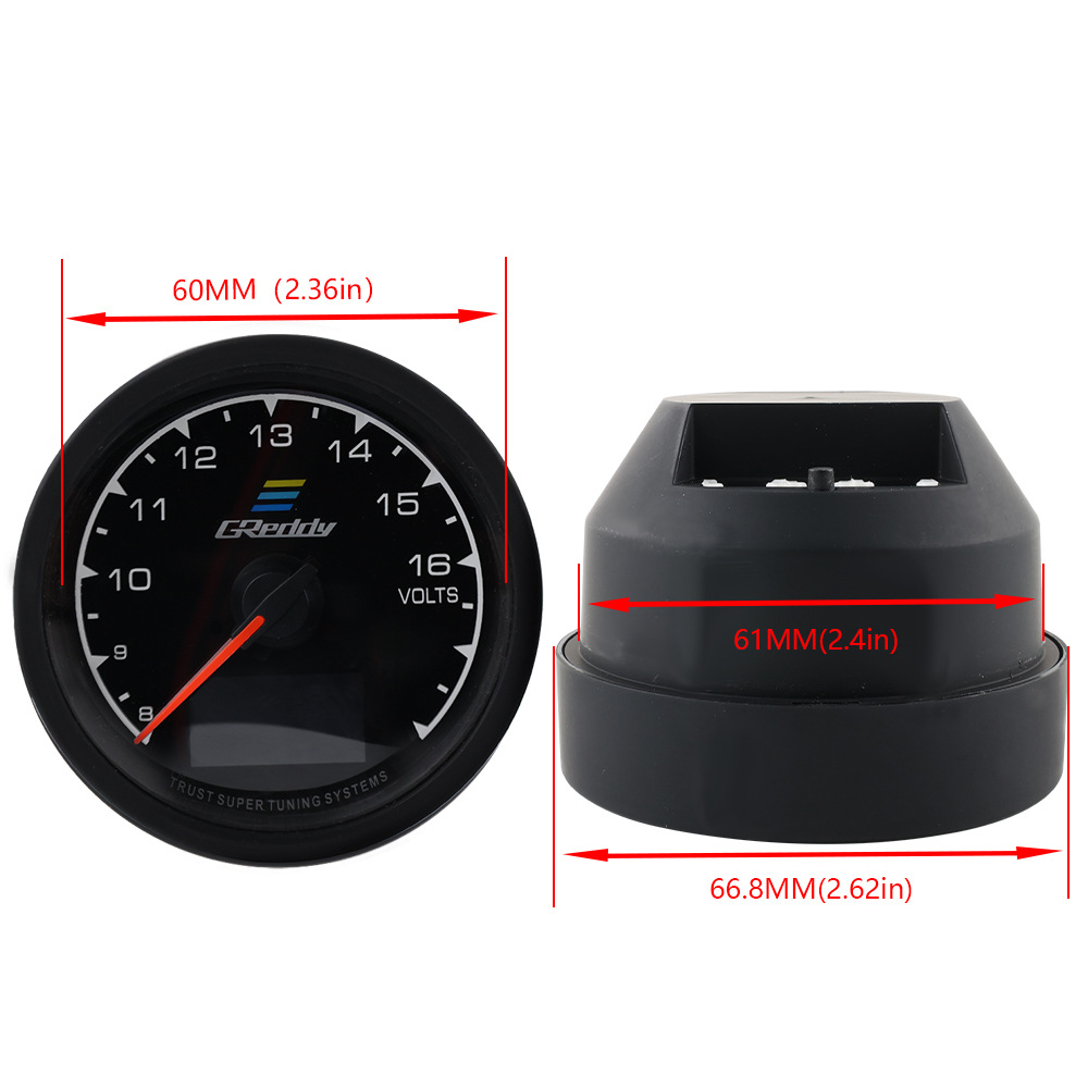 • Sleek Digital & Analog Display: Featuring a sophisticated black face with a precise digital pointer display, this 60mm gauge adds a modern, racing aesthetic to your car’s interior while providing clear and accurate voltage readings from 8V to 18V.