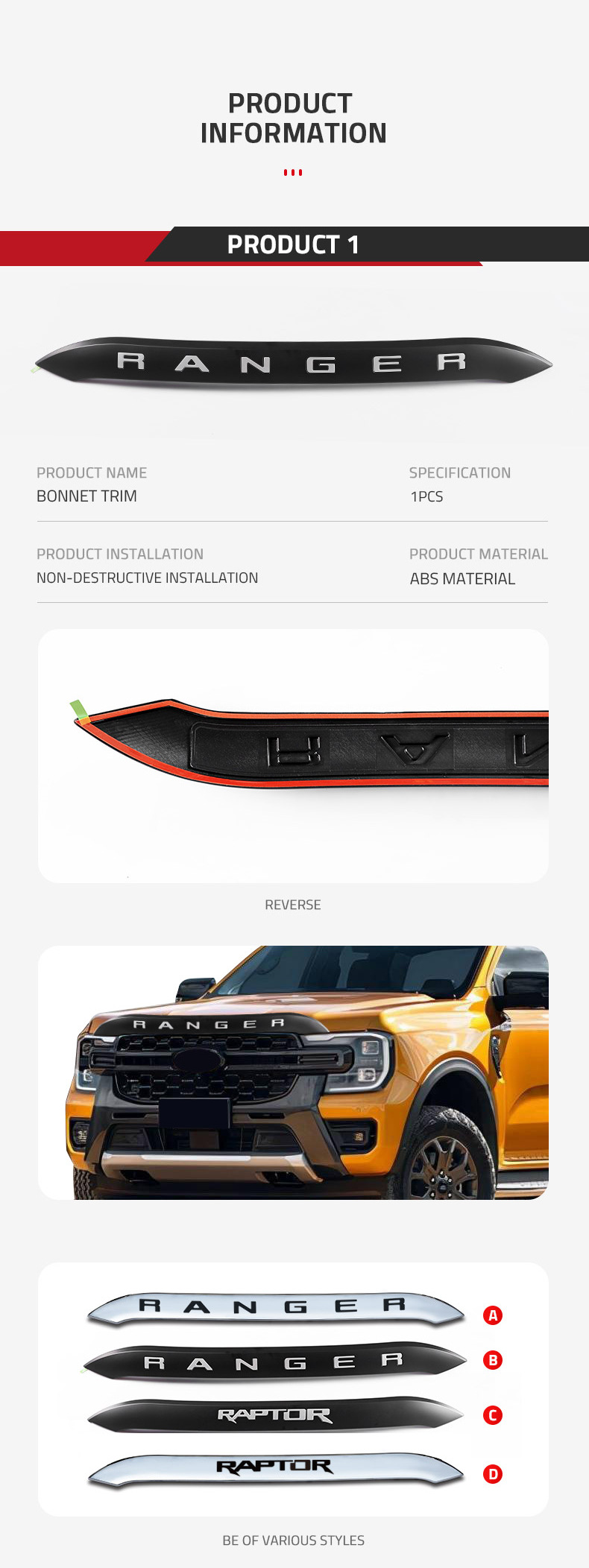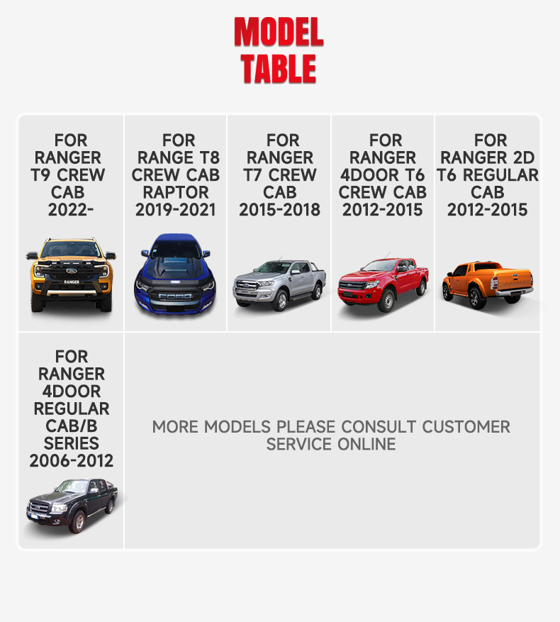 - Direct Fitment: A perfect kit of exterior accessories. Compatible with Ford Ranger 2015-Present.