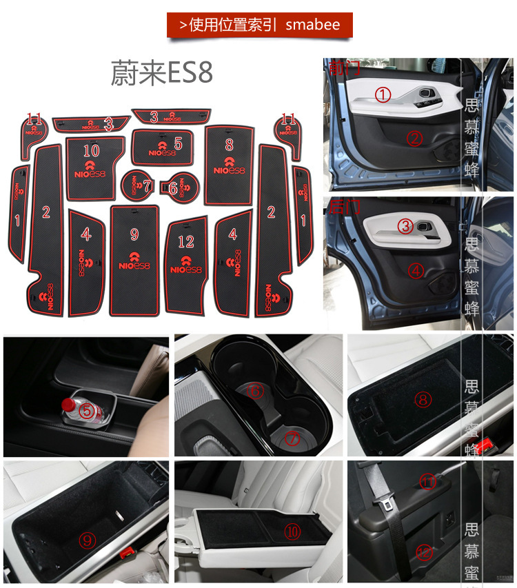Automotive Interior Slot Mat Set Anti-Slip Central Console Cup Holder Armrest Pad for NIO ES8