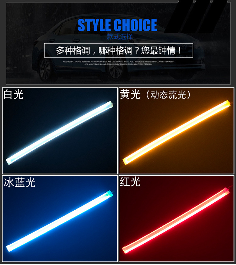 Automotive LED Day Running Lights White & Yellow Dual Color Flowing Turn Signal Strip for Universal Car Models