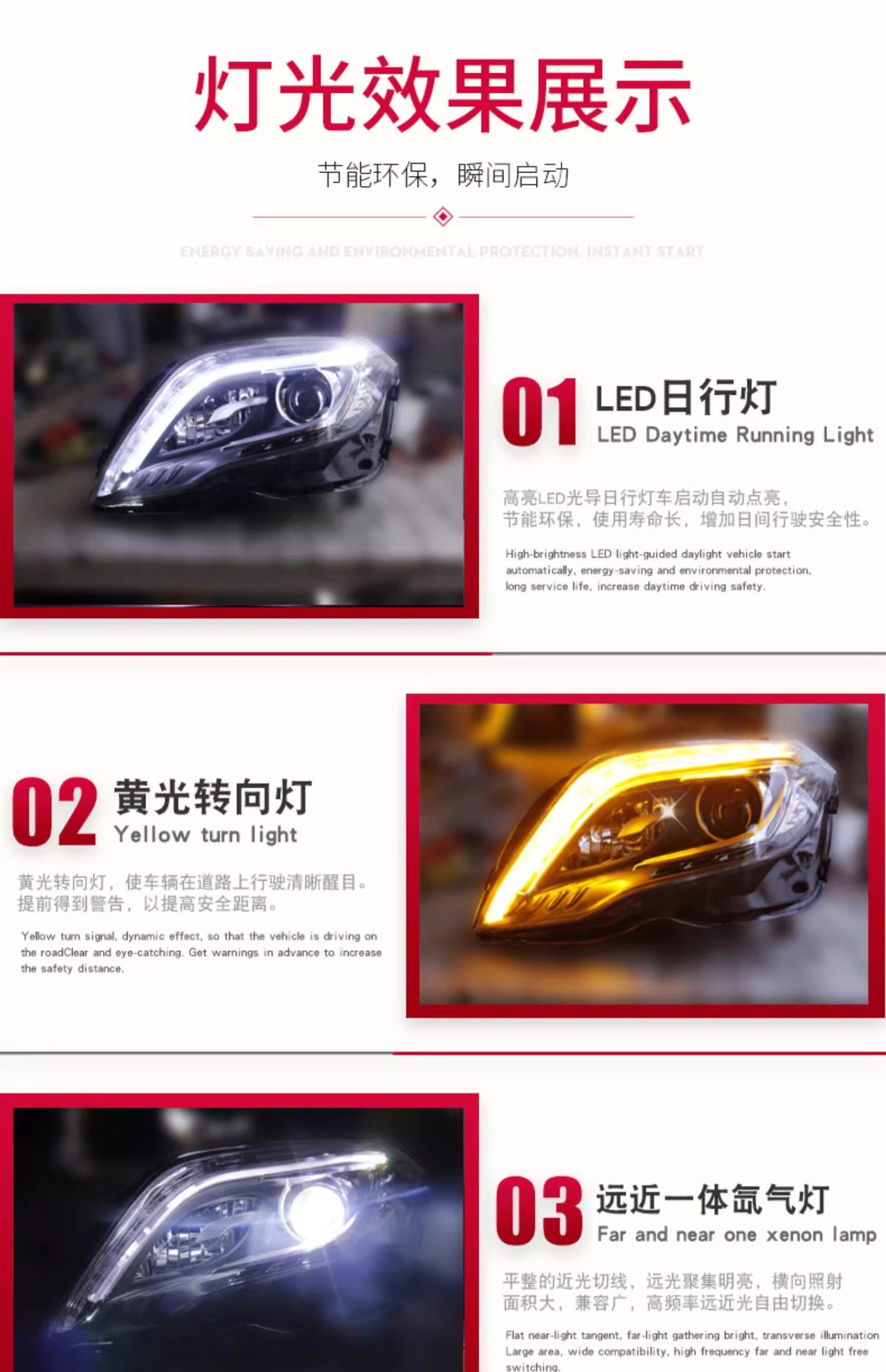 Automotive LED Headlight Assembly with Projector Bi-Xenon Lights for Mercedes-Benz GLK GLK200 GLK260
