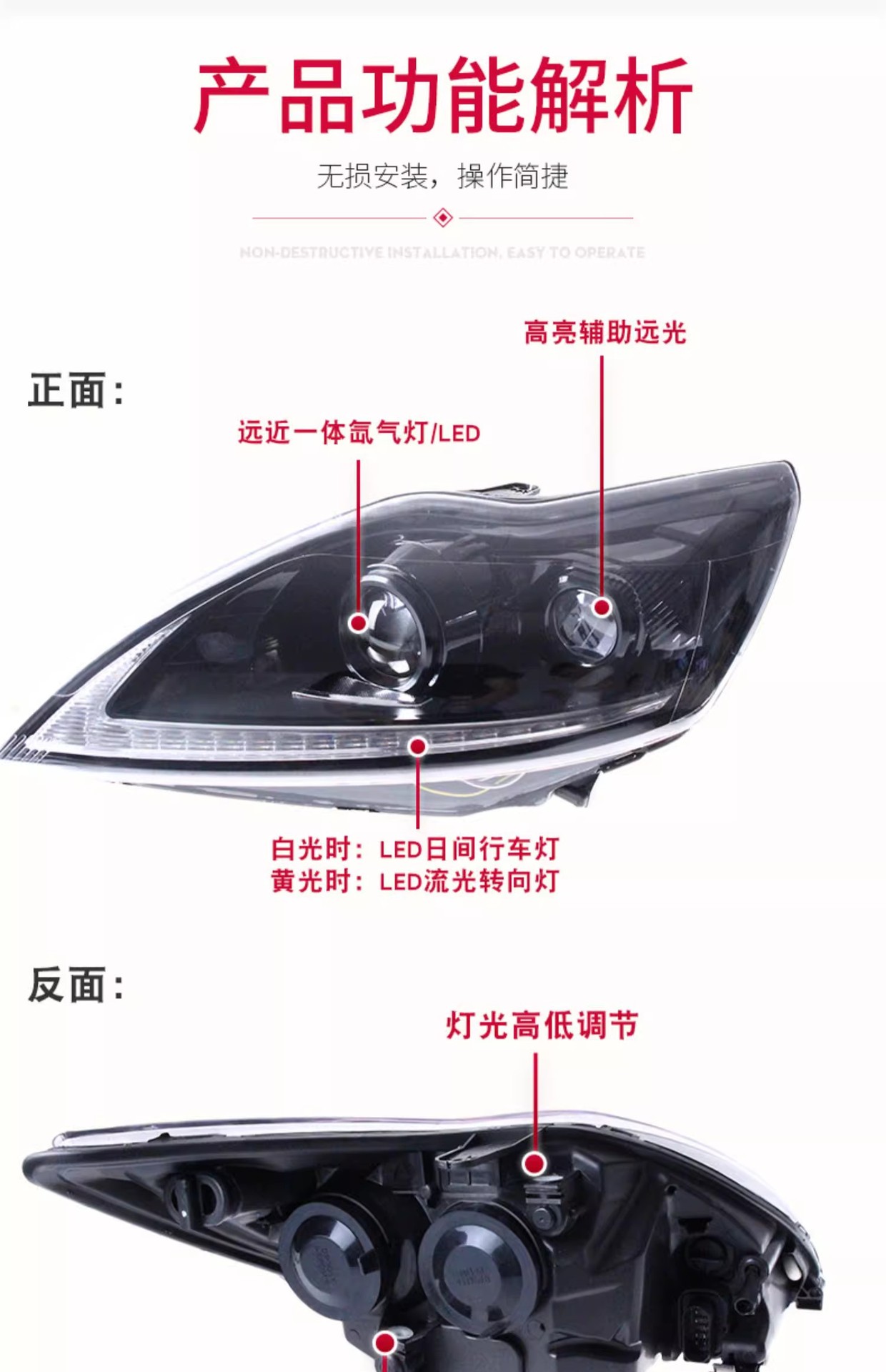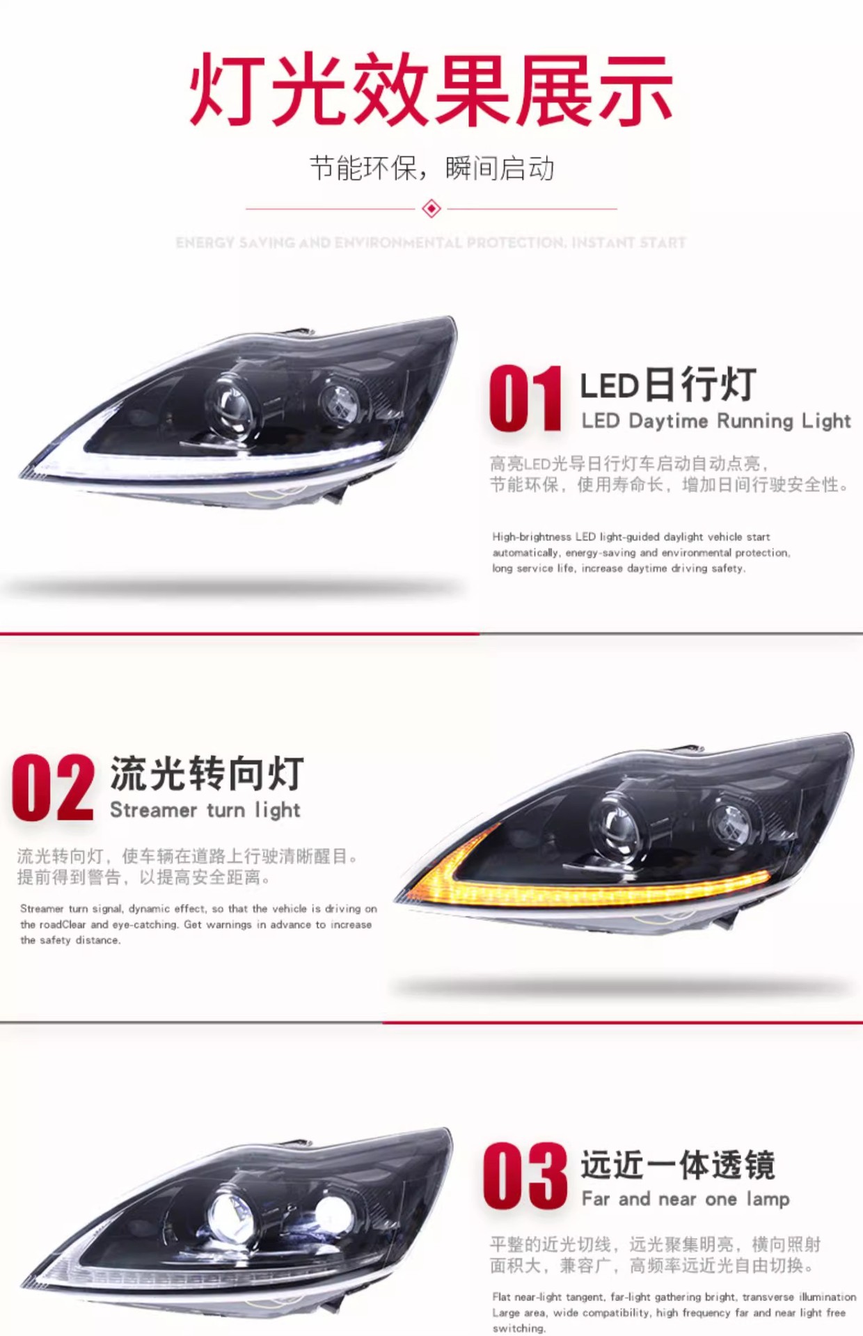 - Enhanced Aesthetics: Upgrades your vehicle’s appearance with a sleek transparent lampshade and integrated sequential turn signals for a distinctive look.