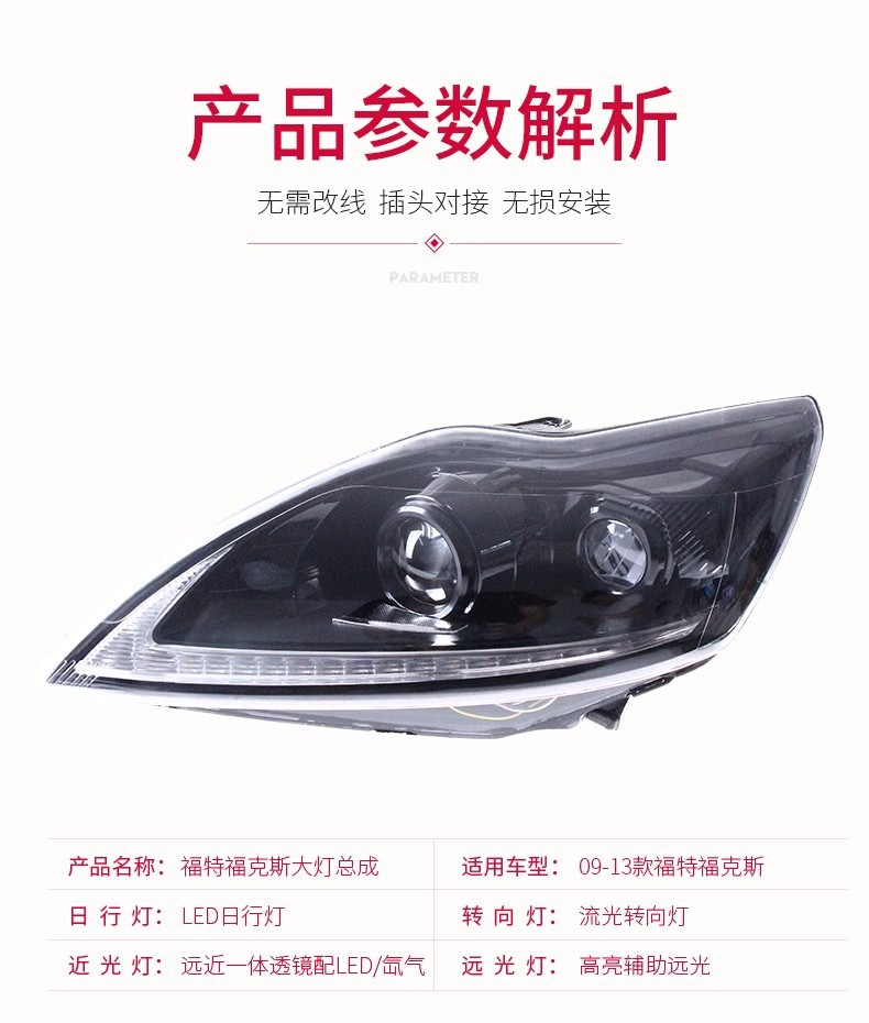 Automotive Left/Right Headlight Assembly LED DRL Sequential Turn Signal for Ford Focus MK1 (2009-2013)