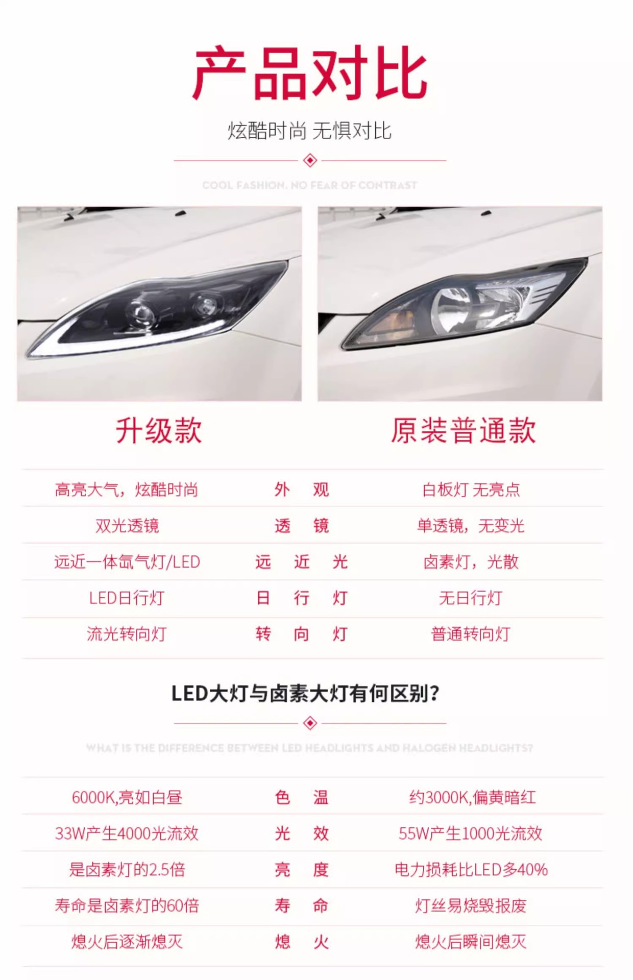 - Premium LED Illumination: Features bright and energy-efficient LED light sources, providing superior nighttime visibility and modern styling.