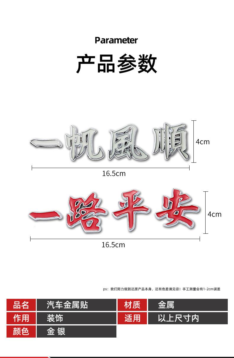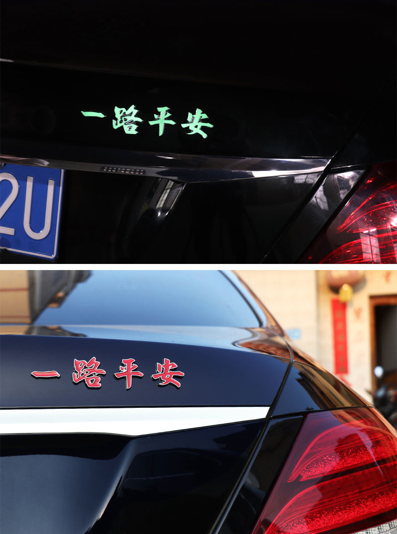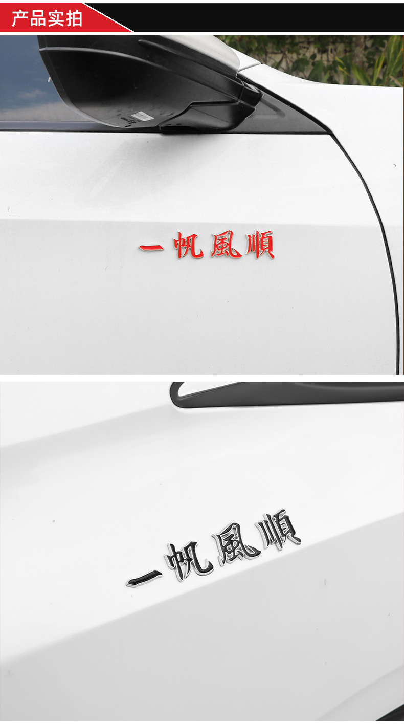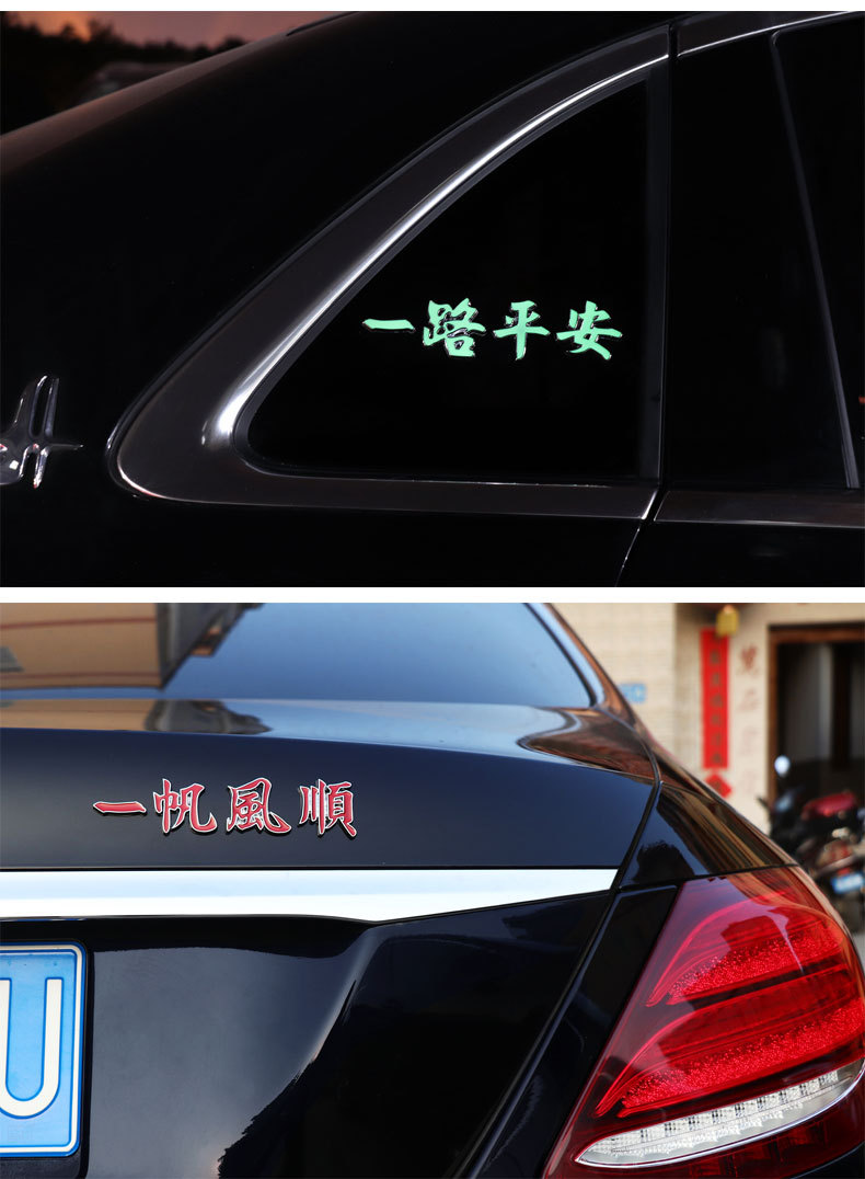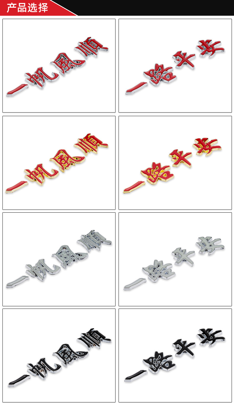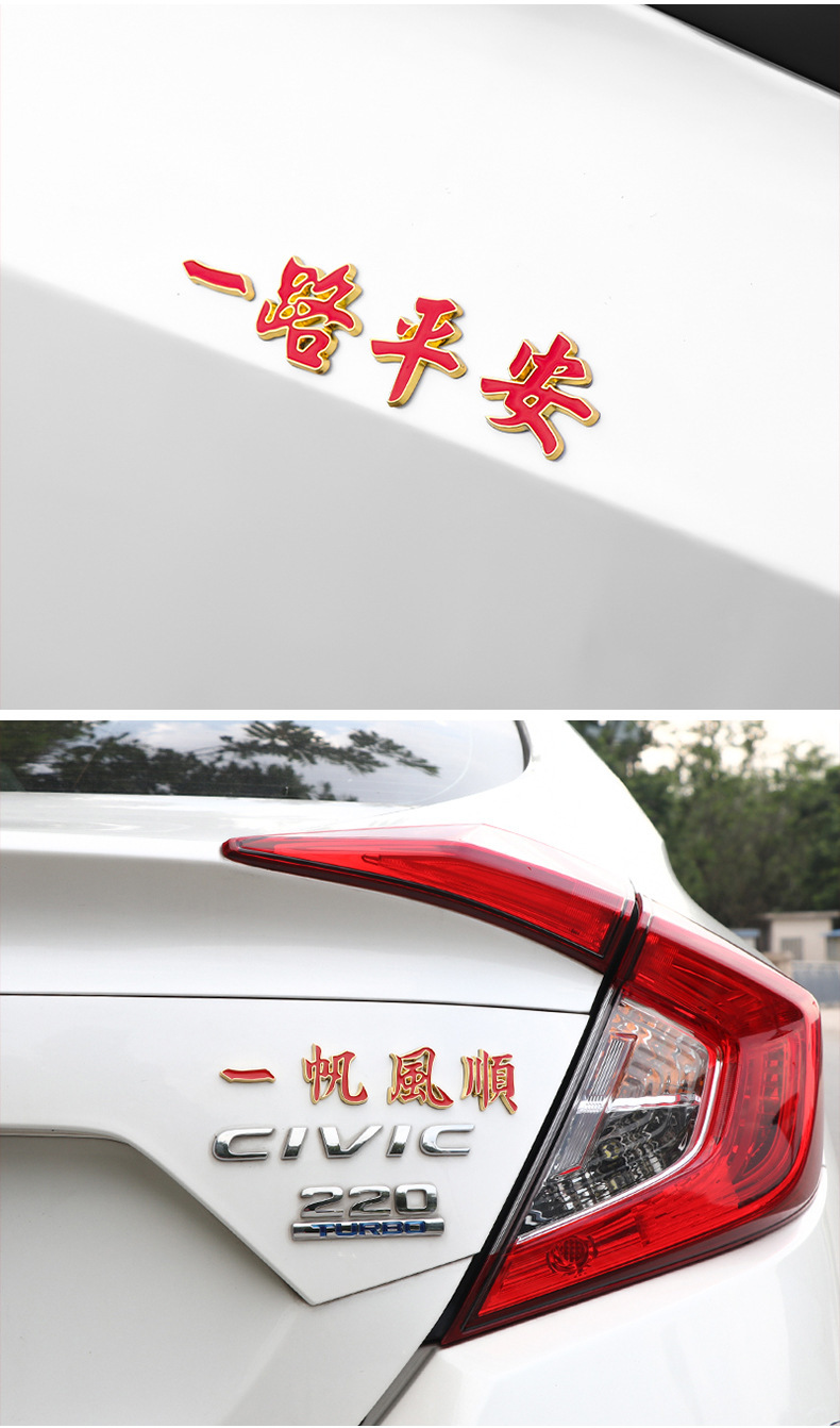 Automotive Metal Emblem Sticker with Chinese Characters ‘Yi Lu Ping An’ & ‘Yi Fan Feng Shun’ for Car Body Tail Decals