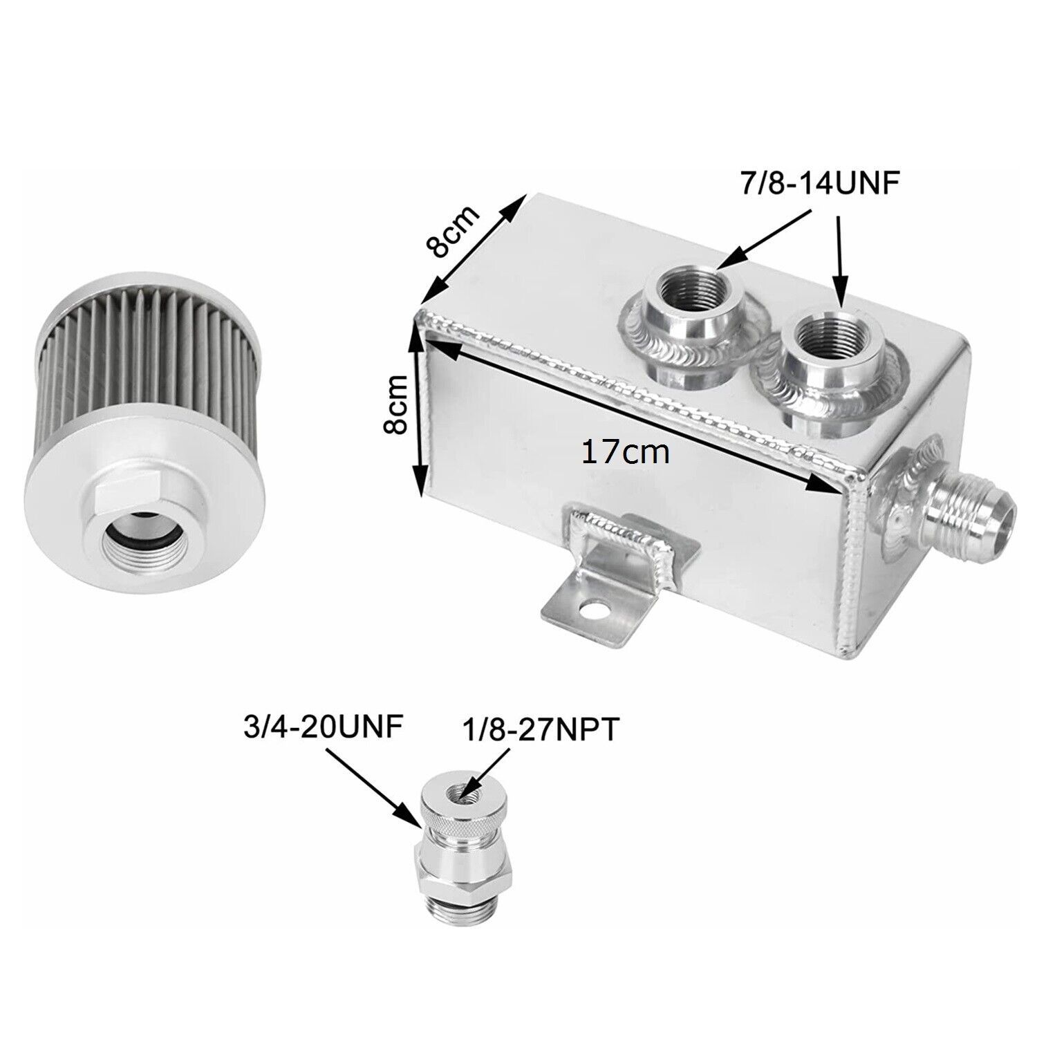 • Durable Aluminum Construction: Crafted from high-quality, lightweight aluminum, this oil catch can is built to withstand extreme engine temperatures and pressures. Its robust design ensures exceptional durability and long-lasting performance, providing reliable protection for your engine for years to come.