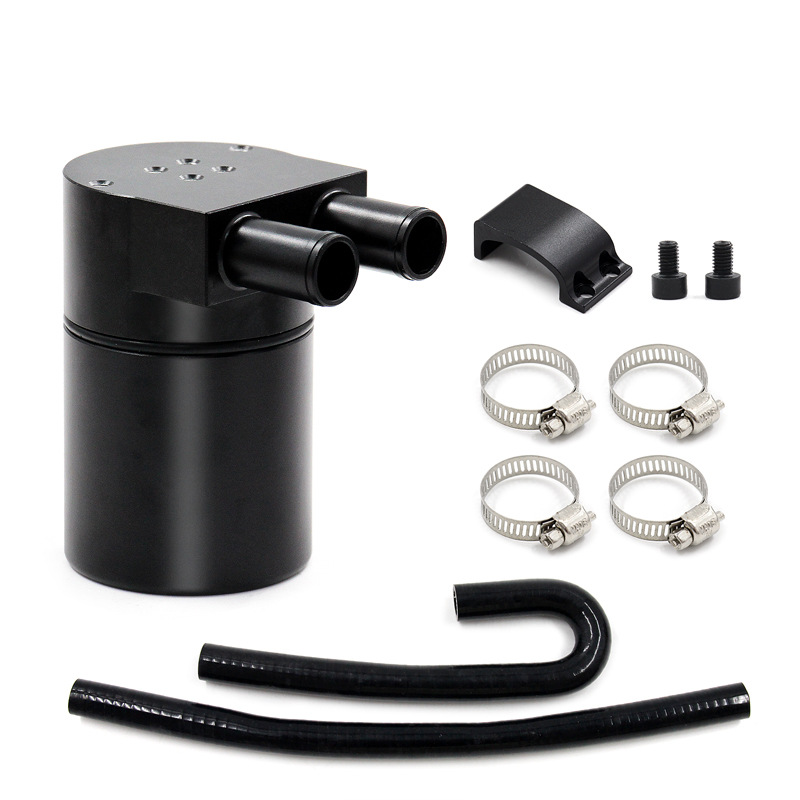 • Durable Aluminum Construction with Enhanced Hosing: Crafted from high-quality, lightweight aluminum, this oil catch can is built to withstand extreme engine conditions. The included silicone hoses offer superior flexibility and heat resistance compared to standard rubber hoses, ensuring long-lasting durability and preventing oil degradation.