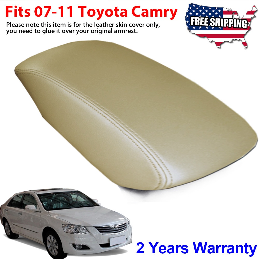 Beige Leather Center Console Lid Armrest Cover for 2007-2011 Toyota Camry