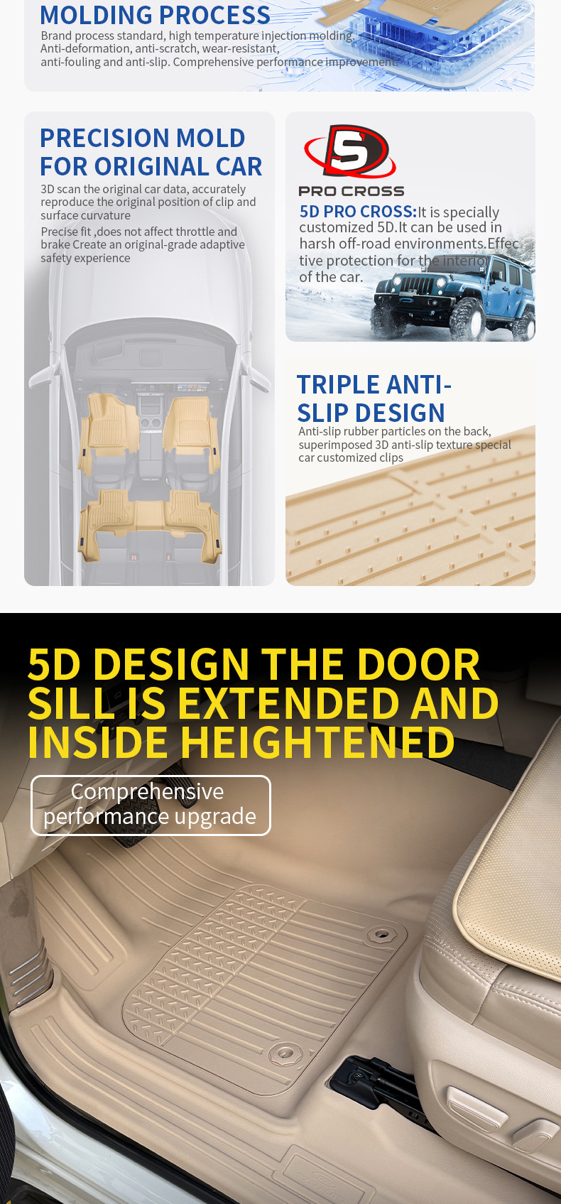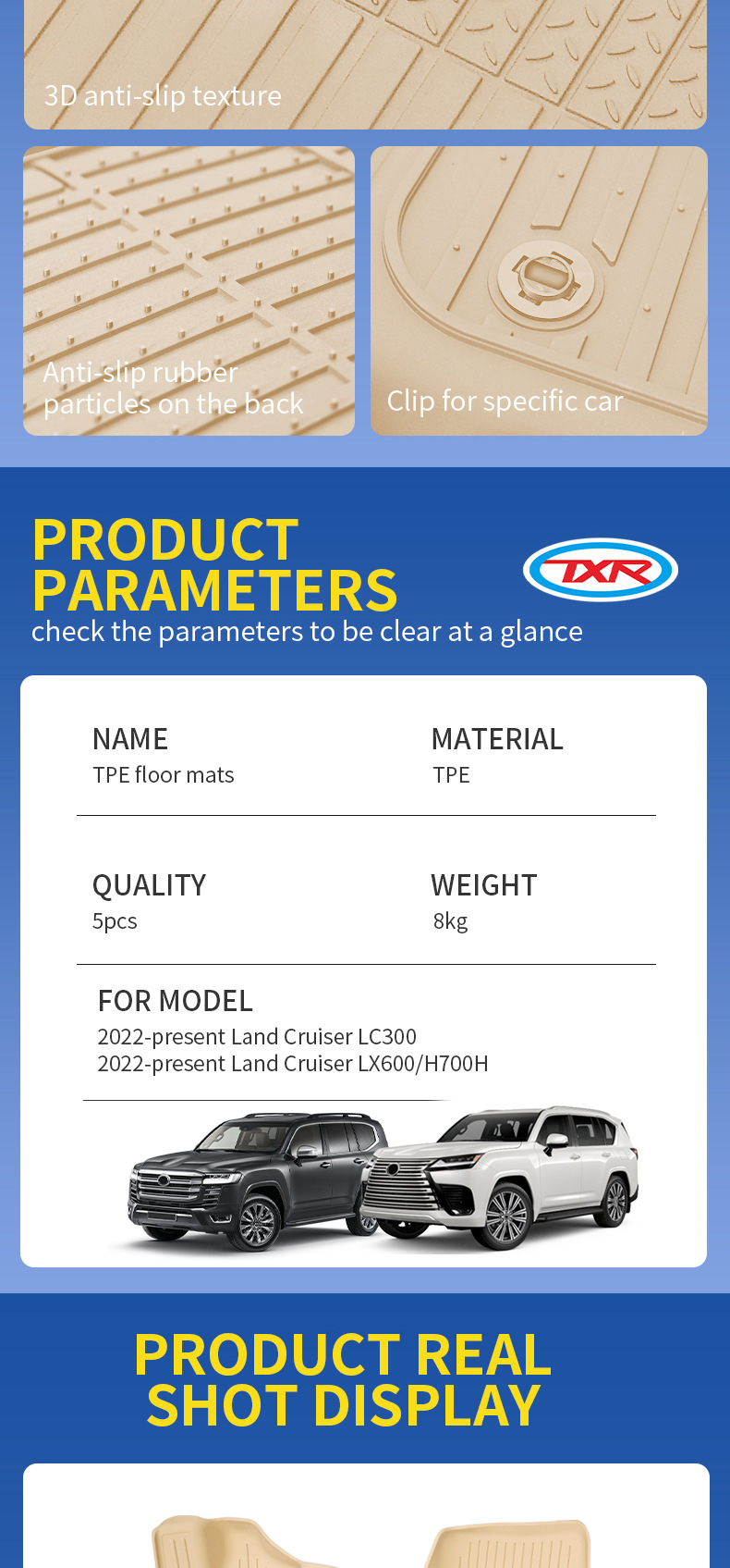 Beige TPE Injection Molded Floor Mats for Toyota Land Cruiser LC300 2022-Present