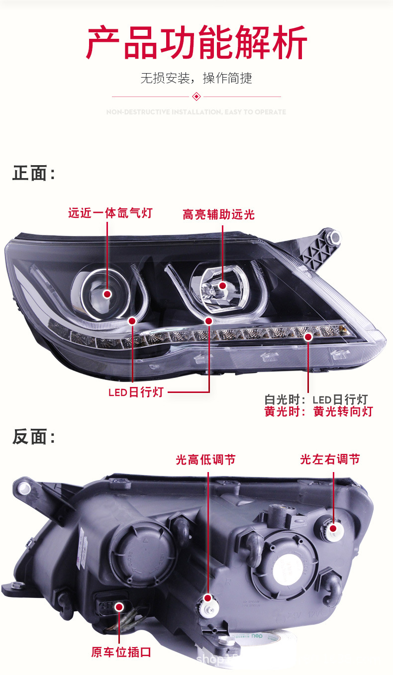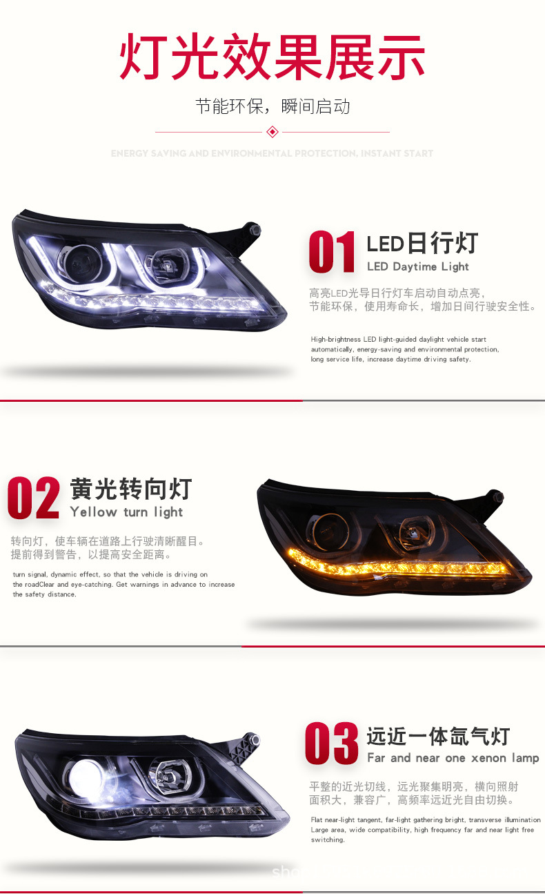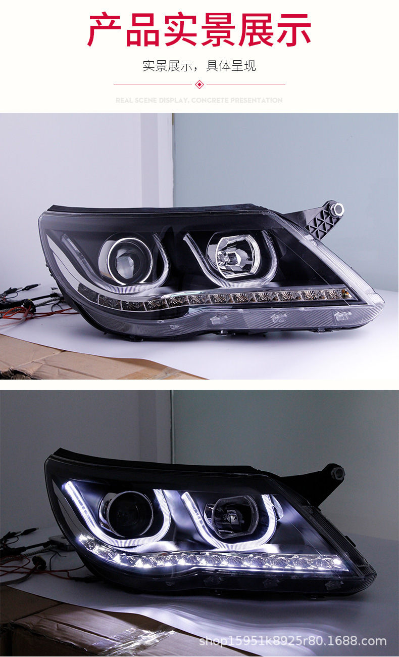 Bi-Xenon Headlight Assembly with Dual U-shaped LED DRL for VW Tiguan 2009-2012