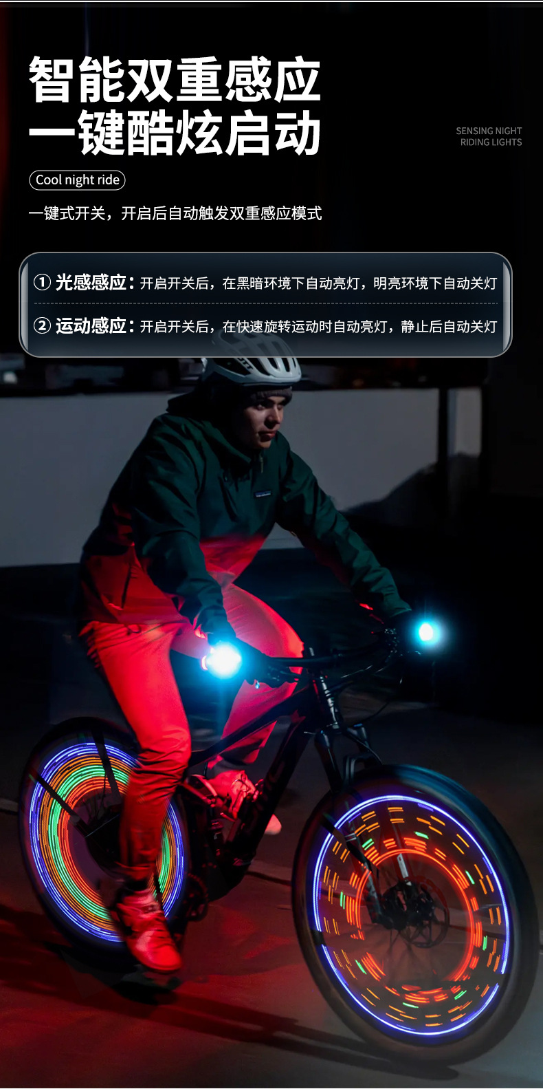 - Smart Sensor-Activated Design: Equipped with dual sensors for automatic light activation as night falls and when riding, providing hassle-free operation and energy efficiency.