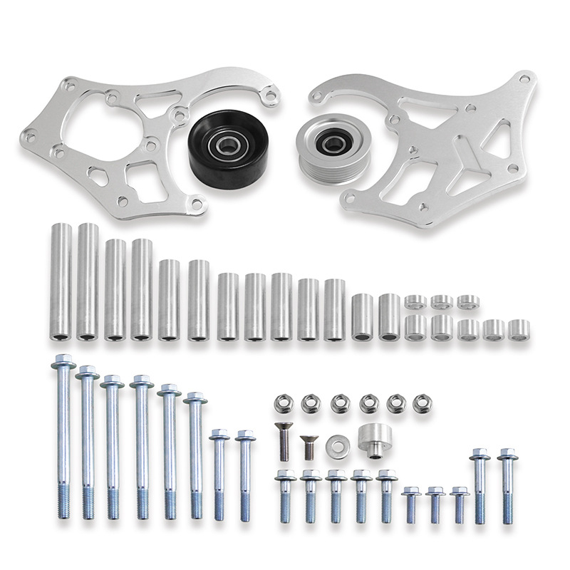 • Featuring a clean, silver finish, this aluminum bracket kit seamlessly integrates with your engine bay, providing a streamlined and organized appearance. Its robust design securely holds your A/C compressor in place, eliminating clutter and enhancing the aesthetic of your LS engine setup, contributing to a professional and refined under-hood look.