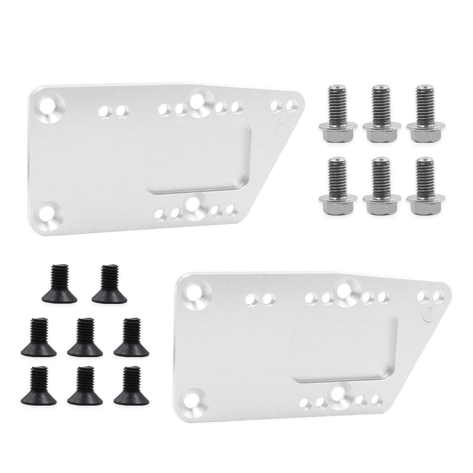 • Designed for straightforward, bolt-on installation, these adapter plates include all necessary hardware (8 flat head bolts, 6 flange M10-1.5 bolts for plates, grade 10.9 hardware) and offer four adjustable engine positions (including stock SBC location and additional offsets of .625″, 1.625″, 2.250″) for versatile engine placement without extensive modifications.