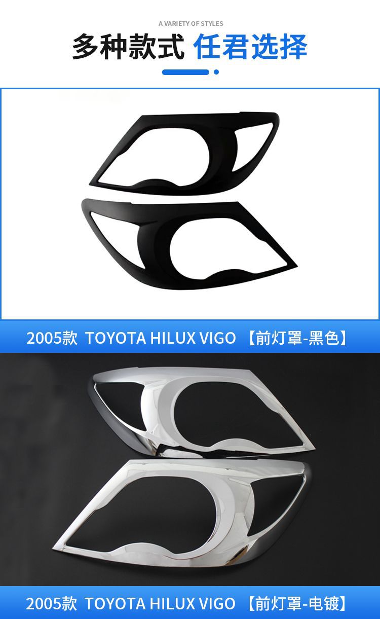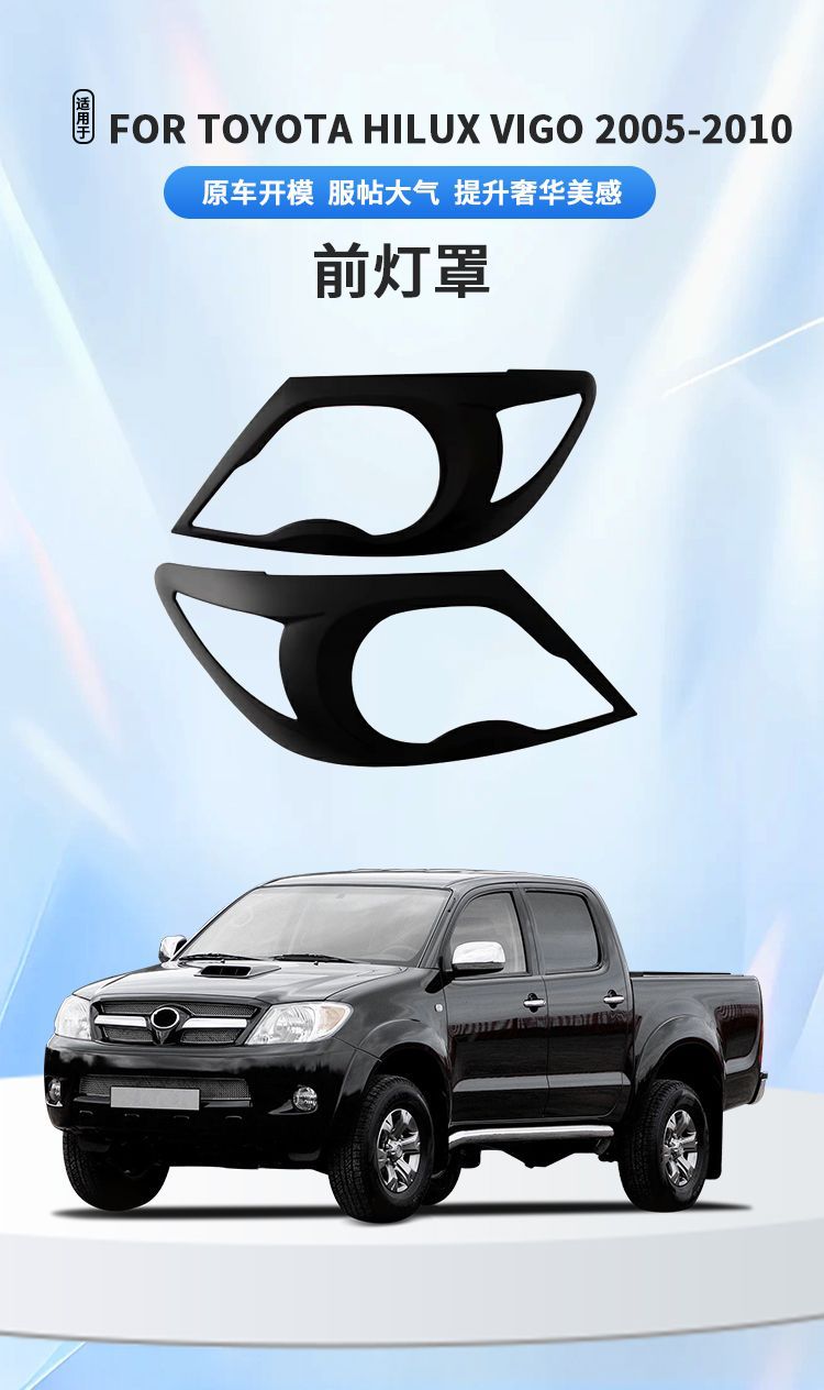 Black ABS Headlight Bezel Cover Trim for Toyota Hilux Vigo 2005-2010