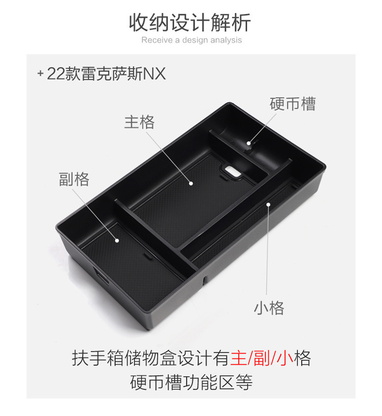 Black ABS Plastic Center Console Organizer Tray for Lexus NX 2022-2023, RZ Interior