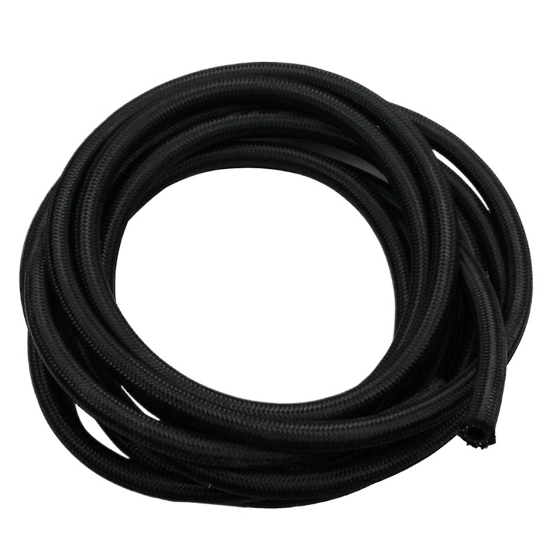 Black AN8 Nylon Braided Fuel Oil Fluid Hose Line for Automotive Oil Cooler Systems