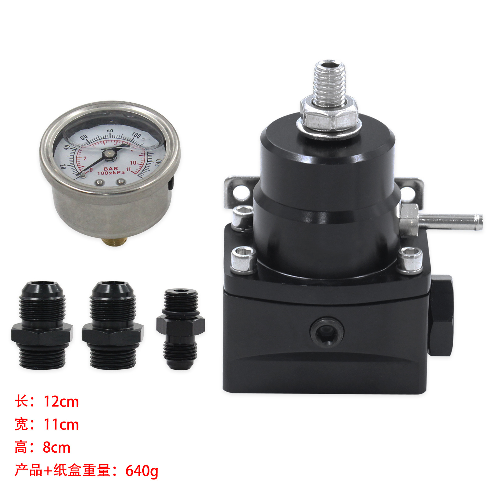 Black Adjustable Fuel Pressure Regulator Kit with 0-160psi Gauge (AN6, AN8) for EFI Systems.