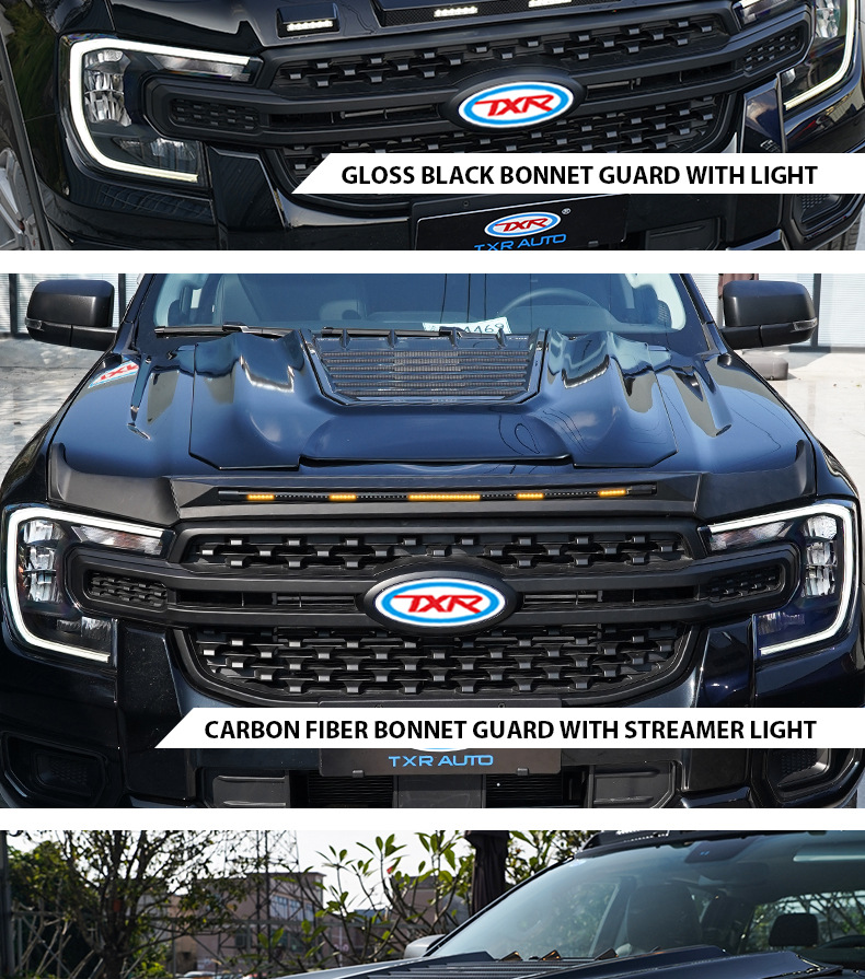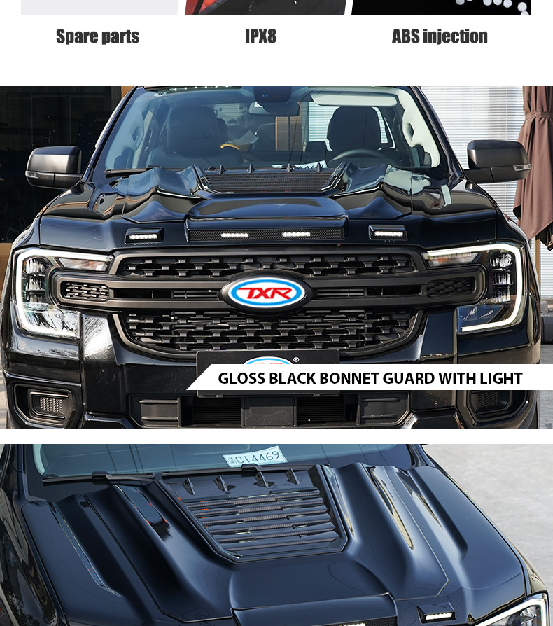 Black Bonnet Guard with DRL LED Lights for Ford Ranger T9 2022-Present