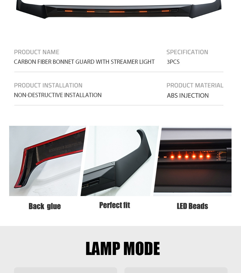 - Complete Package: Includes 1x Bonnet Guard with LED Lights, exactly as pictured. Please verify fitment details before purchasing.