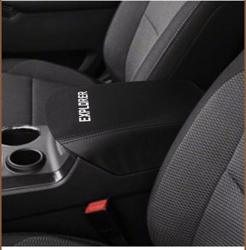 Black Carbon Fiber & Leatherette Center Console Armrest Cover for Ford Explorer 2011-2018