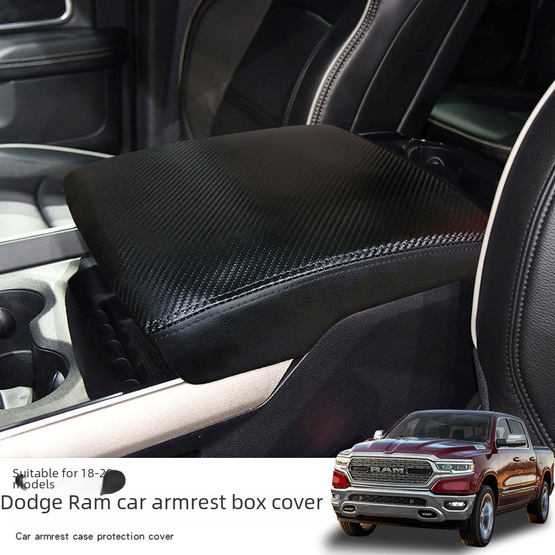 Black Carbon Fiber Leather Armrest Box Cover for 2018-2020 Dodge RAM 1500