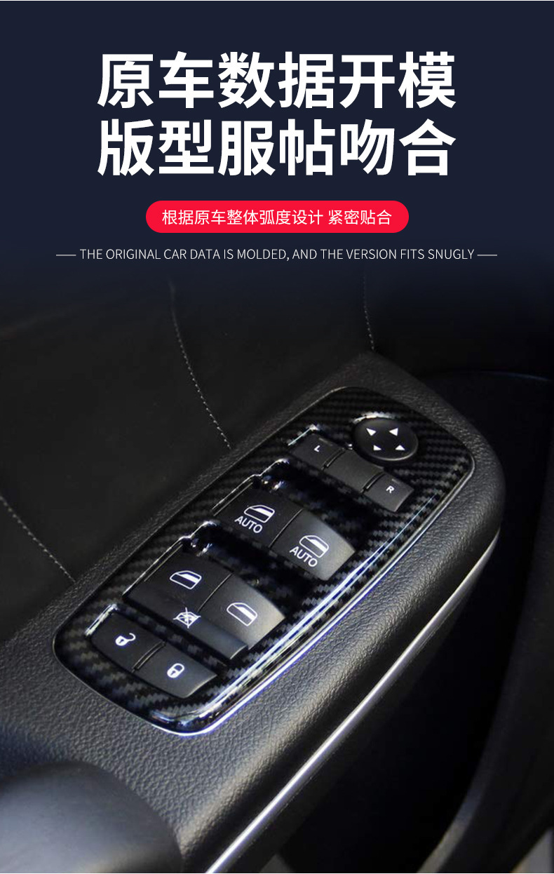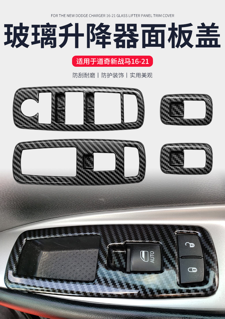 Black Carbon Fiber/Red Carbon Fiber Window Lift Switch Panel Trim Cover for Dodge Charger (2016-2021)