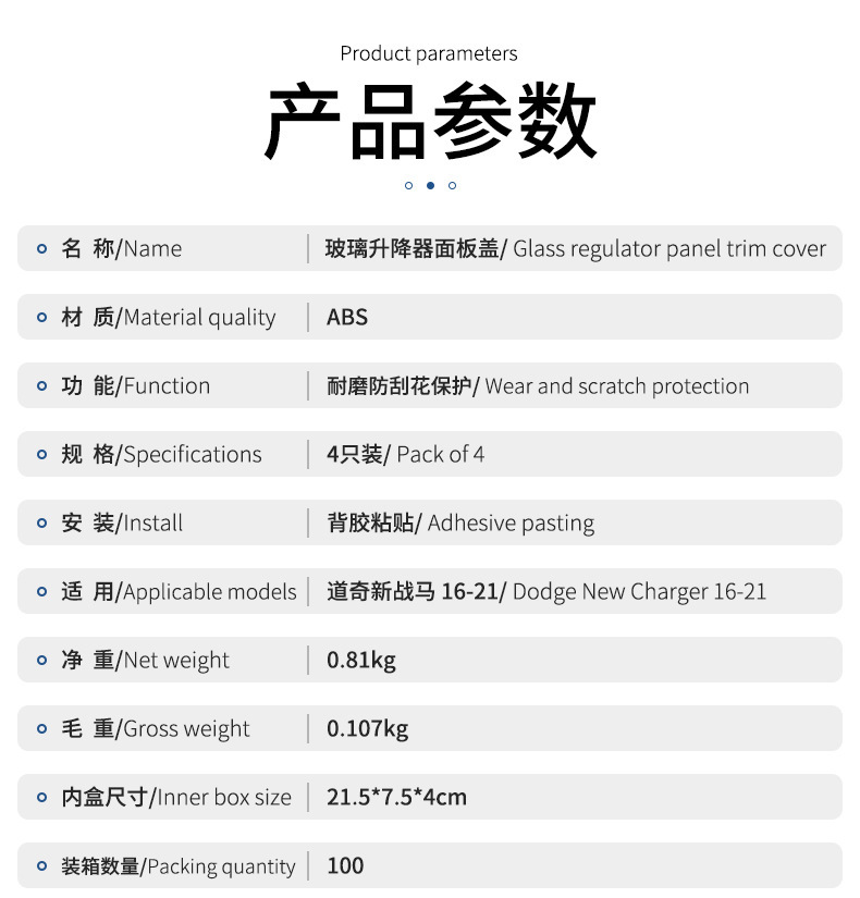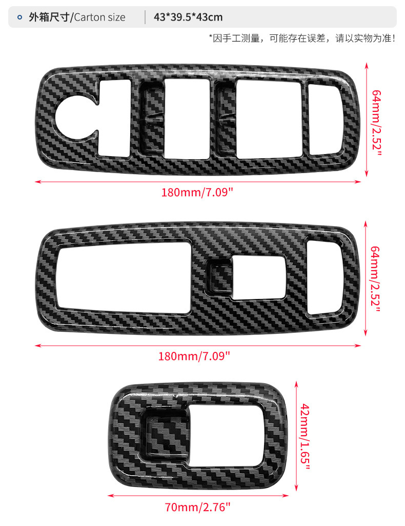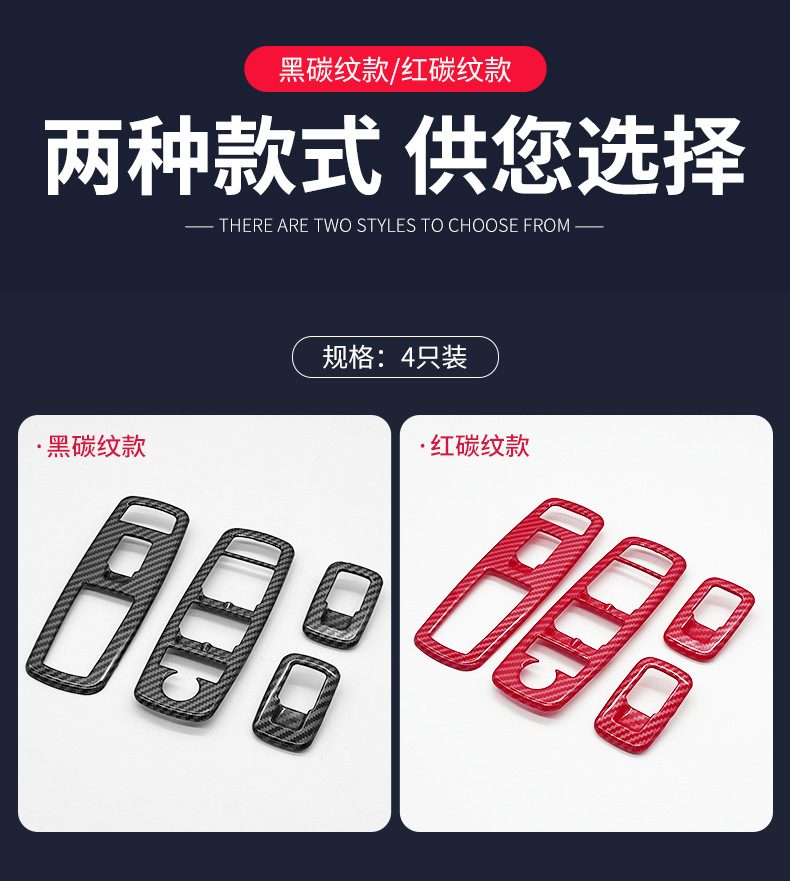 - Interior Enhancement Package: Includes a set of window lift switch panel covers to elevate the look of your vehicle’s inner door, providing a luxurious and personalized upgrade.